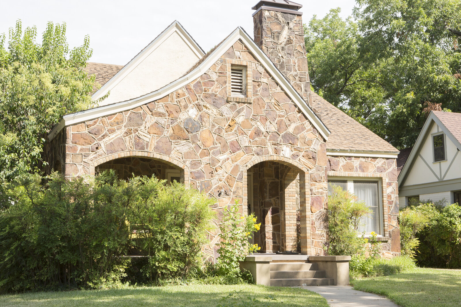 Wald, Western oder Klippe?Die Renovierungsprofis haben ihr Bestes gegeben, um den Fergusons ein perfektes neues Heim zu kreieren. Die Fassade sieht schon mal veilversprechend aus, doch wie wirdes Innen nach dem Umbau aussehen?Bild: © 2015, HGTV/ Scripps Networks, LLC. All Rights Reserved. Lizenzbild frei