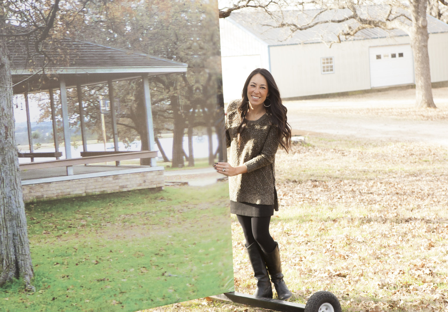 Lust aufs LandVorher und nachher: Joanna Gaines lässt ein Bild mit dem alten Haus verschwinden und ermöglicht den Besitzern einen Blick auf das neue, strahlende Heim ...Bild: © 2014, HGTV/ Scripps Networks, LLC. All Rights Reserved. Lizenzbild frei