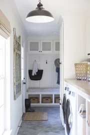 Die Waschküche der TräumeAus der unscheinbaren Waschküche hat Joanna durch das Versetzen der Tür auch einen Eingangsbereich mit viel Stauraum und einer Garderobe geschaffen.Bild: © 2017, Scripps Networks, LLC. / Jennifer Boomer / Jennifer Boomer