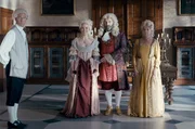 Ankunft in der FremdeViele Hugenotten fanden beim deutschen Adel Anstellung, da Französisch als Sprache der Gebildeten galt. So auch Diener Siegmund (Torsten Bussmann) bei (v.l.n.r.) Josepha (Paula Muth), dem Bürgermeister (Andreas Schlager) und seiner Frau (Dagmar Schorn).Bild: © arte