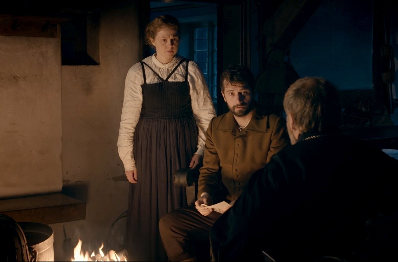 Suzanne Loyal (Anja Antonovicz), Abraham Loyal (Björn von der Wellen) und Pastor Armand (Meinolf Steiner, r.)Bild: © ZDF und rbb/Gebrueder Beetz Filmproduktion.