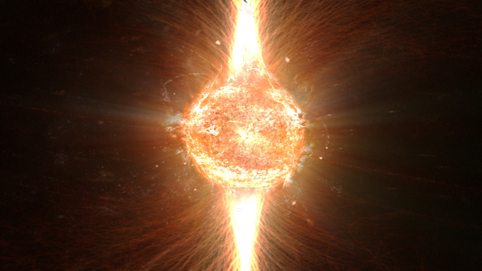 Folge 1Ein Neutronenstern kann in Sekundenbruchteilen mehr Energie freisetzen als die Sonne in hunderttausend Jahren. (Animation)Bild: © N24 Doku