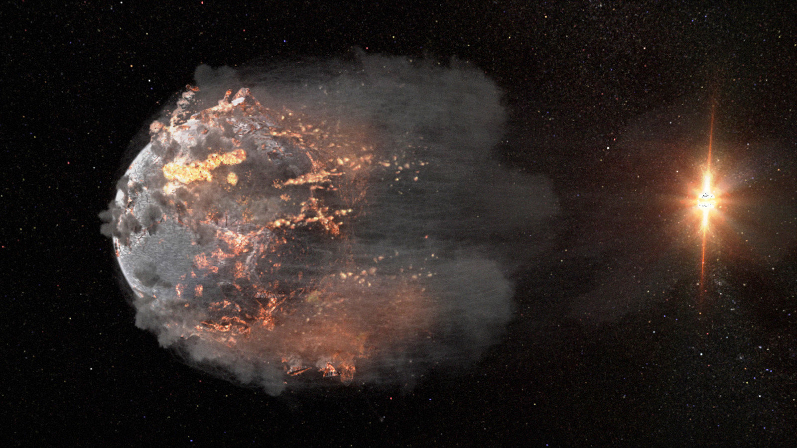 Folge 1Vorboten der Katastrophe sind heftige Meteoritenschauer und auch größere Asteroiden schlagen immer wieder auf der Erde ein und richten großen Schaden an. (Animation)Bild: © N24 Doku