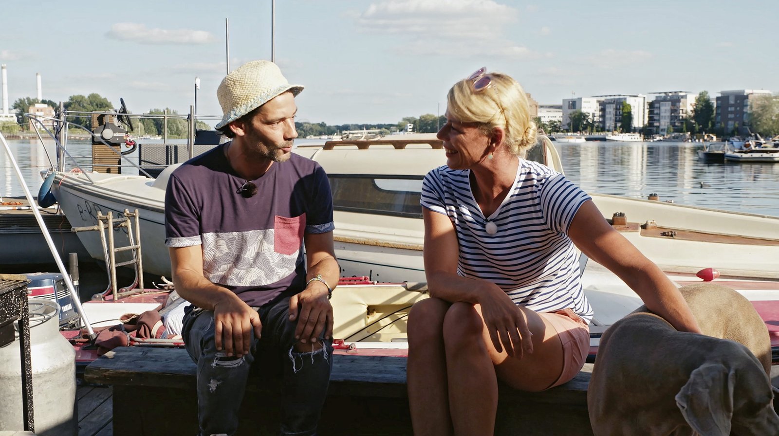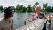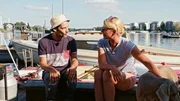 Ulrike Finck paddelt von Fürstenberg zum Tegeler SeeEin kleiner Garten direkt am Wasser, ein einsamer Steg am See oder eine abwechslungsreiche Kanutour durch die Wildnis: So sieht ein perfekter Sommer vor der Haustür aus! Ulrike Finck trifft diesmal Freizeitkapitäne mit schicken Booten, Camper mit verrückten Gefährten, treckerverliebte Hobby-Schrauber und natürlich viele Wasserfreunde und Sonnenanbeter. Foto: Auf einem Steg in Tegel mit Joe Löhrmann.Bild: © rbb/Markus Gerlach