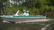 Von Flecken Zechlin nach AltfriesackKeine andere Gegend in Deutschland hat für den Urlaub auf und am Wasser bessere Voraussetzungen als Berlin und Brandenburg. Die Region hat mehr als 3000 Seen und 6000 Kilometer befahrbare Flüsse, Kanäle und Rhine zu bieten. Für das neue rbb-Erlebnisformat paddelt Ulrike Finck mit dem Kajak diesmal durch die Rheinsberger Seenplatte, von Flecken Zechlin bis nach Altfriesack bei Neuruppin. - Ulricke Finck mit Jens Winkelmann auf dem Ibis 1 Bauerjahr 1973Bild: © rbb/Markus Gerlach