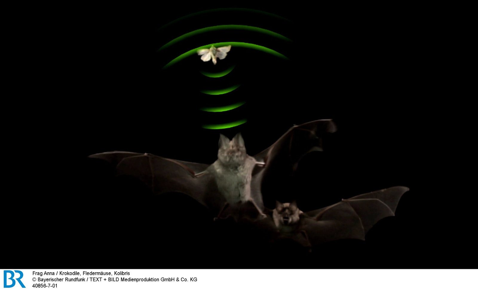 Krokodile, Fledermäuse, KolibrisDank der Echoortung finden sich Fledermäuse im Dunkeln wunderbar zurecht.Bild: © BR/TEXT + BILD Medienproduktion GmbH & Co