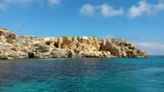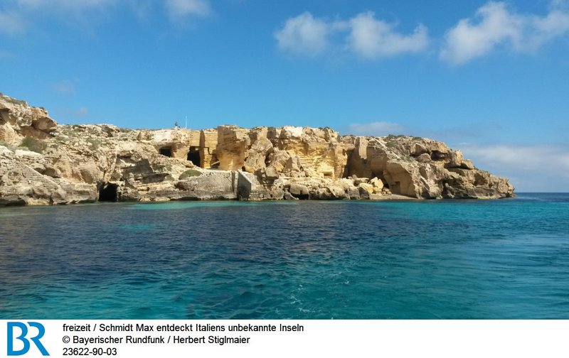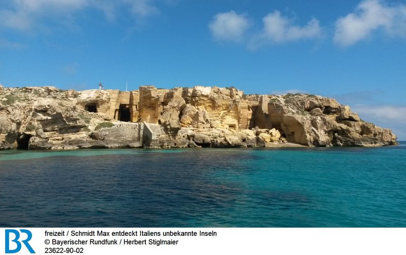 Tuff-Steinbrüche vor der Insel Favignana. Seit der Antike wird hier Tuffstein gewonnen und direkt auf Schiffe verladen. Viele Gebäude und Kirchen sind aus diesem Baustoff entstanden.Bild: © BR/Herbert Stiglmaier