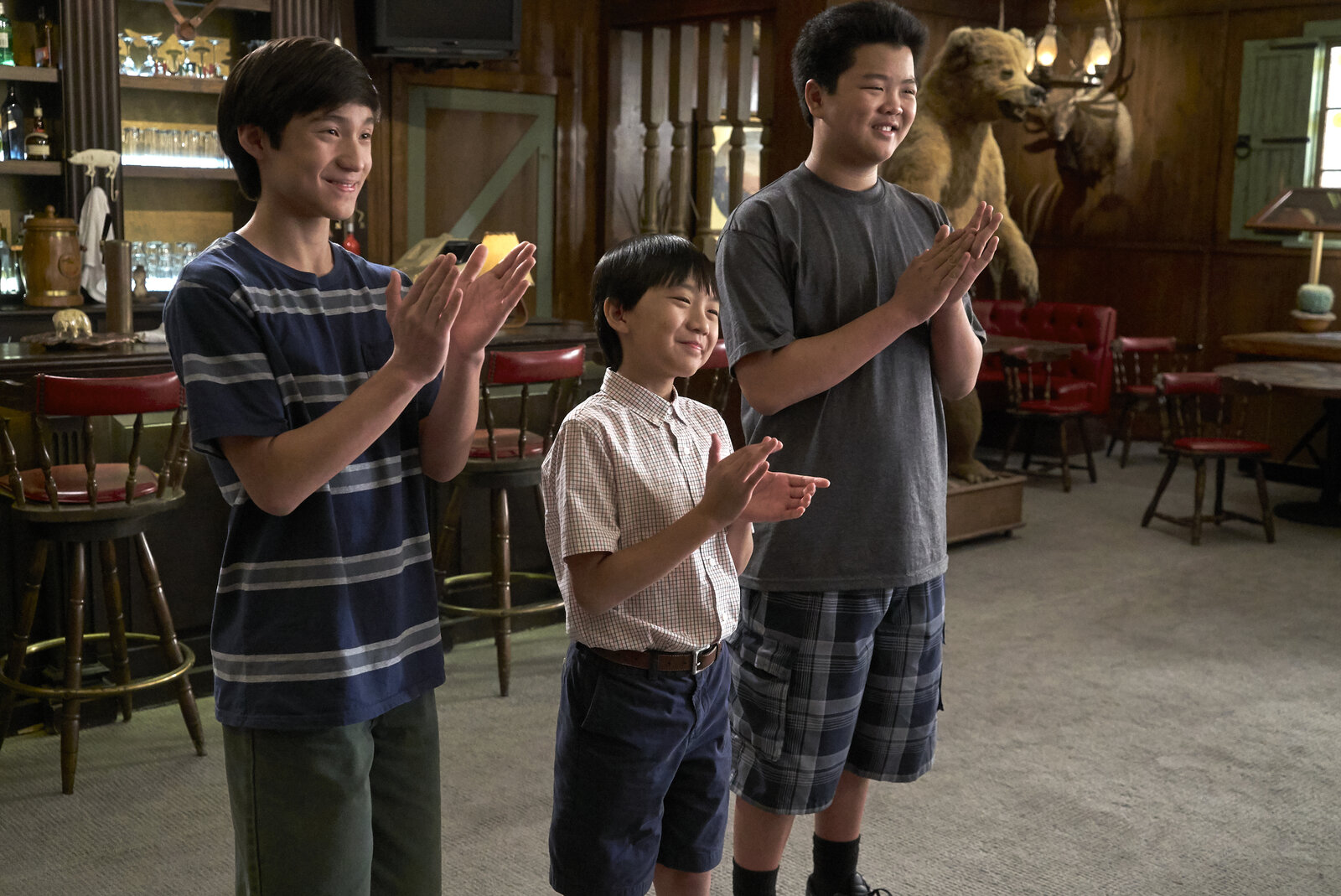 Der Cha-Cha-King wird 40(v.l.n.r.) Emery Huang (Forrest Wheeler); Evan Huang (Ian Chen); Eddie Huang (Hudson Yang)Bild: © 2018-2019 American Broadcasting Companies. All rights reserved.