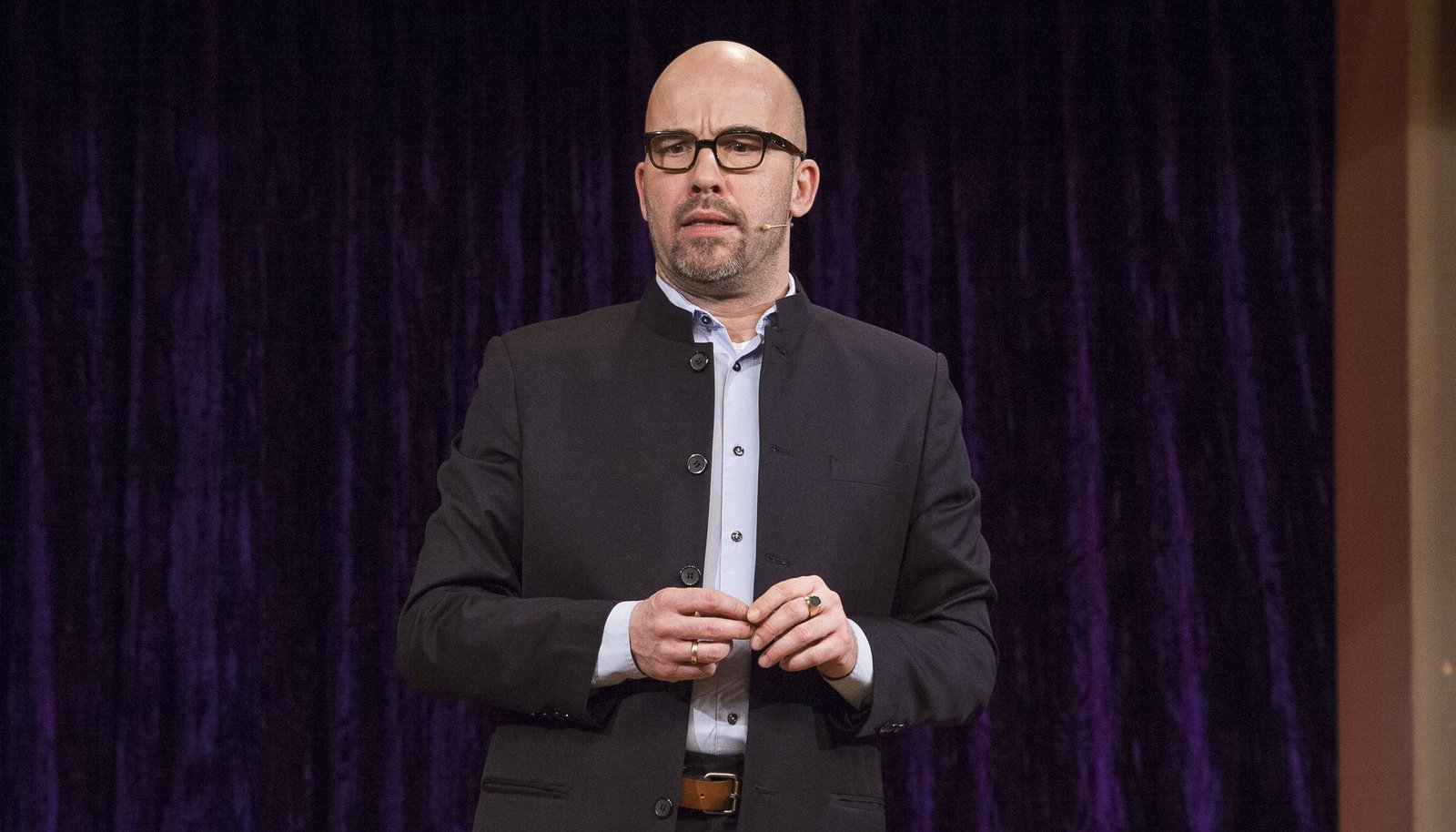 Michael Frowin gibt sich sehr engagiert, wenn er seine Generation unter die Lupe nimmt.Bild: © SWR/Alexander Kluge