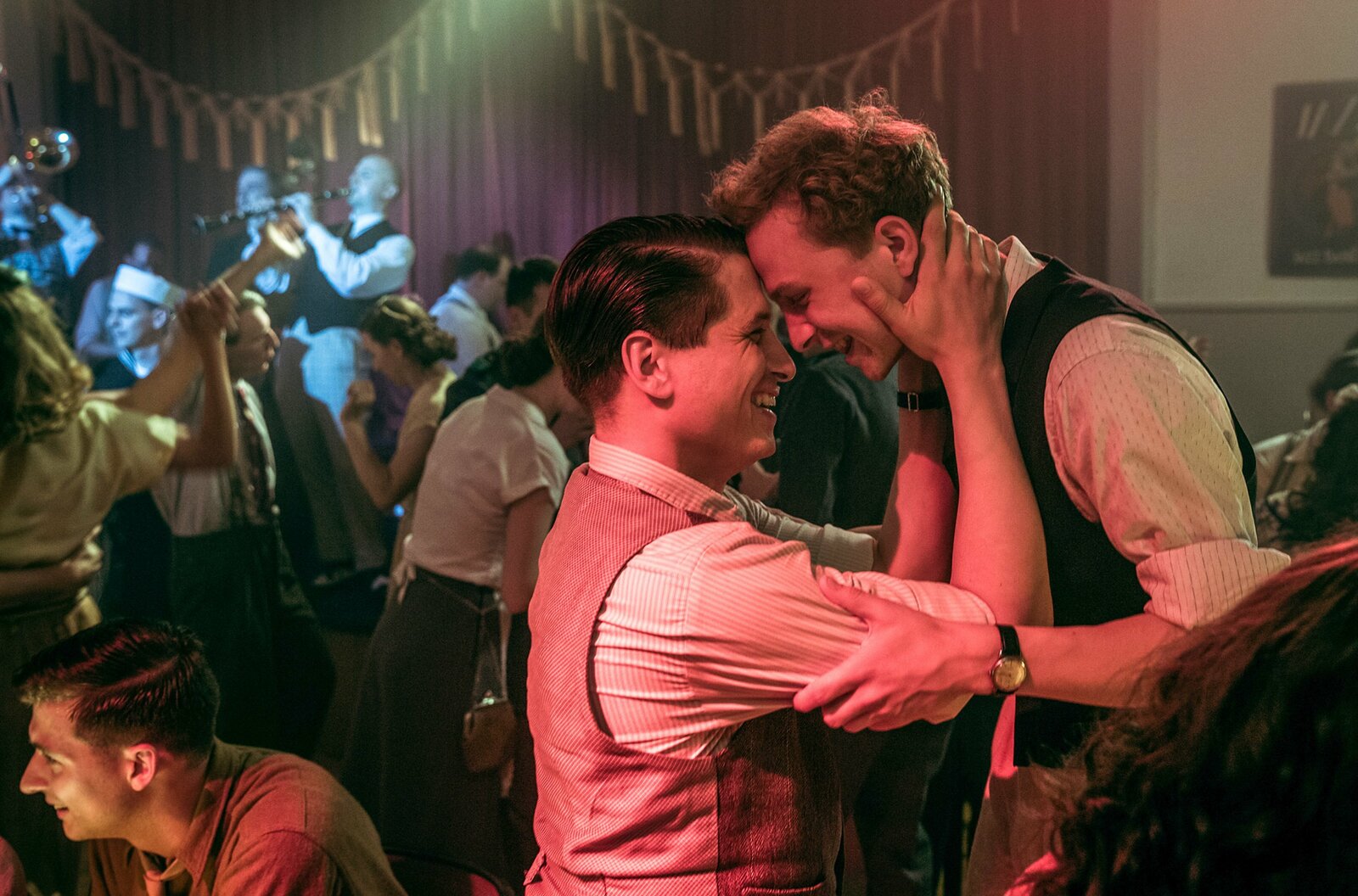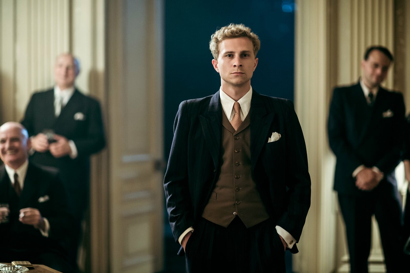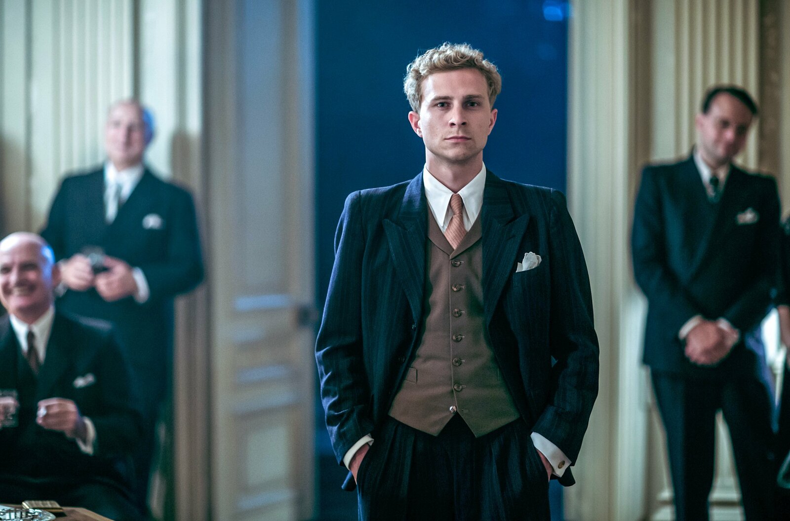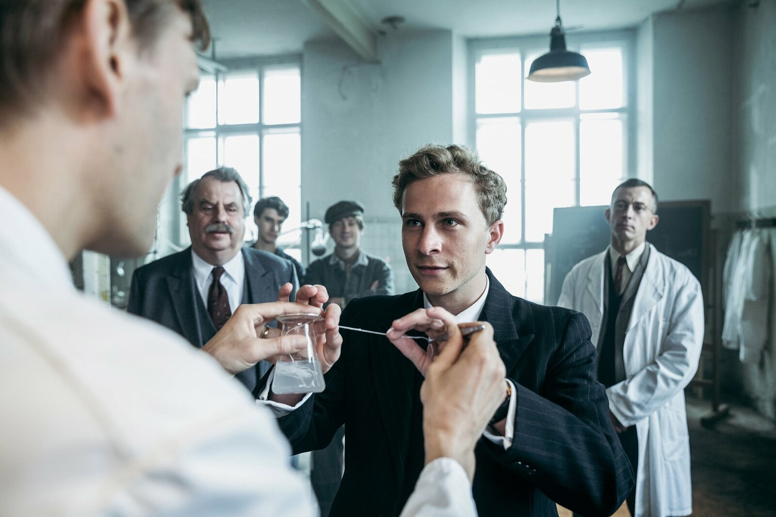 Die Bemühungen tragen Früchte: Urs Bosshardt als Alfred Tobler(2.v.l.), Max Hubacher als Johann Leutenegger (Mi.)Bild: © Sava Hlavacek / SRF/Sava Hlavacek / RTS/SRF/Sava Hlavacek