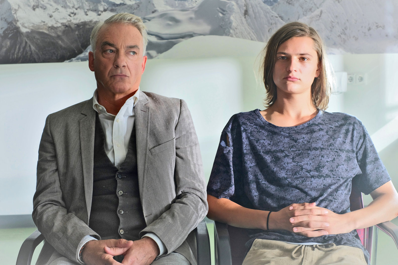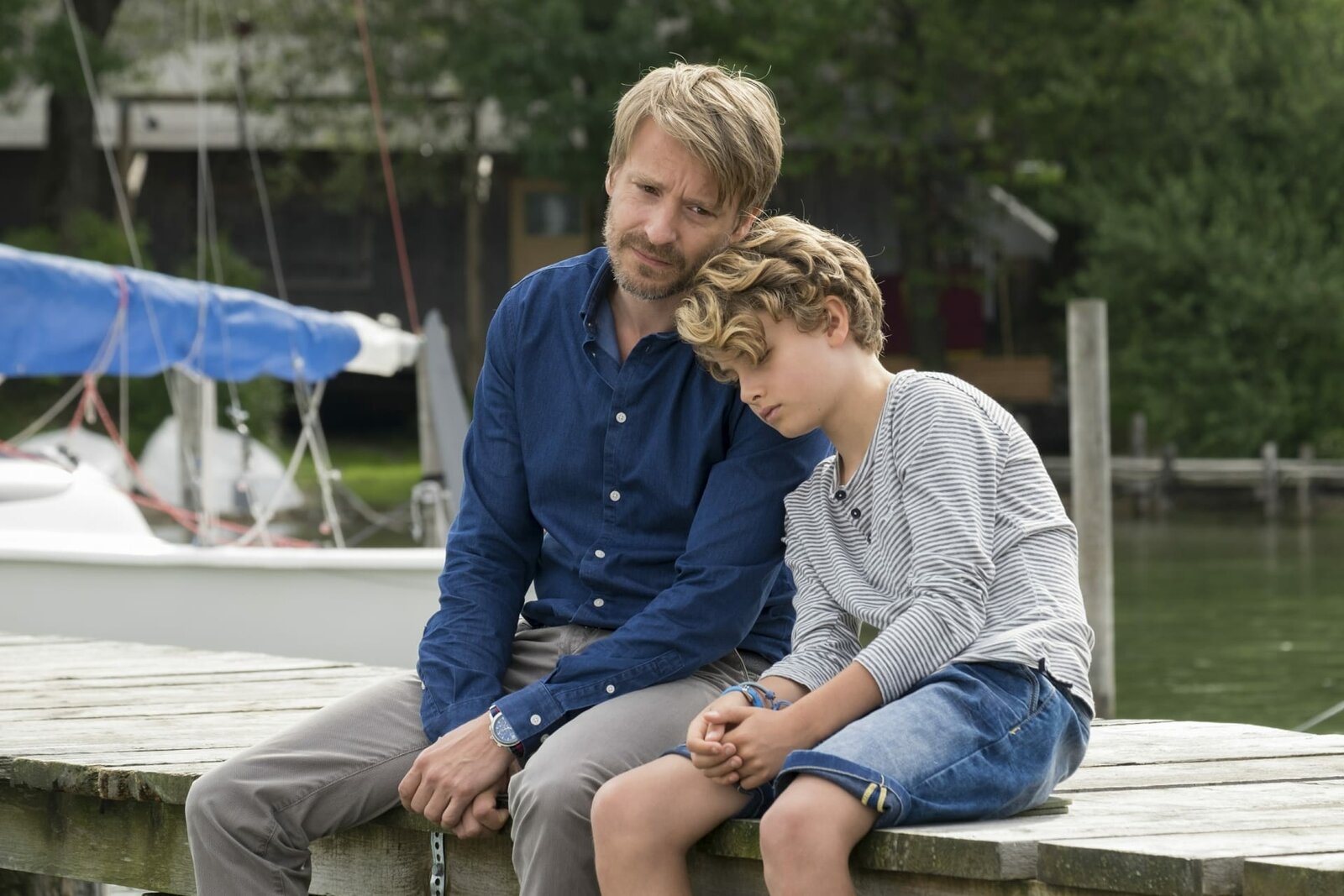 Wenn Kraniche fliegenJan Steinmann (Christoph M. Ohrt, l.) ist stinksauer, dass er beim Schuldirektor vorgeladen wird, weil sein Sohn Adrian (Kristo Ferkic) einem Mitschüler das Nasenbein gebrochen hat.Bild: © ZDF und Jacqueline Krause-Burberg