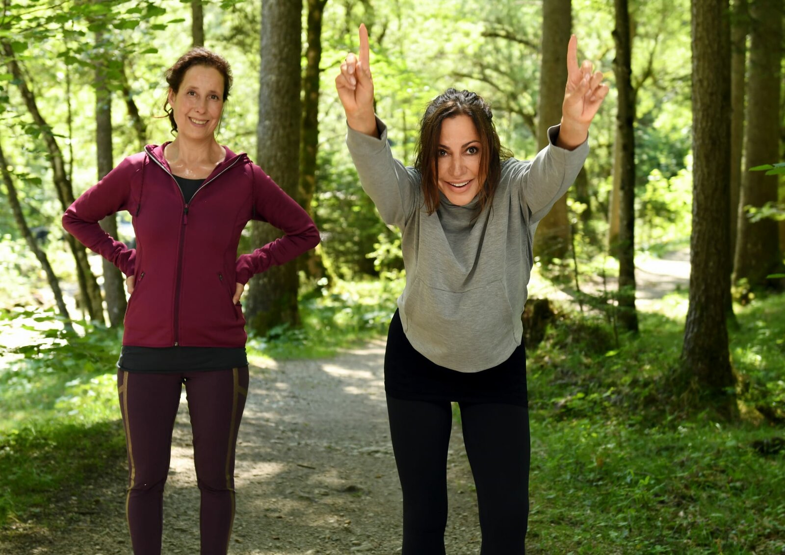 Große kleine LügenGanz schön sportlich: Katja Baumann (Simone Thomalla, r.) und Dr. Schneiderhan (Caroline Ebner, l.) laufen eine Runde im Wald.Bild: © ZDF und Barbara Bauriedl.