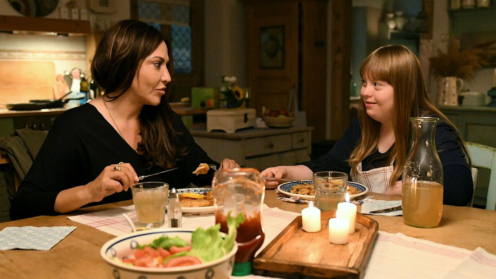 Liebe hinter geschlossenen VorhängenFrühling – Liebe hinter geschlossenen Vorhängen Eine köstliche Überraschung: Simone Thomalla als Katja, Luisa Wöllisch als MilaBild: © SRF/ZDF/Barbara Bauriedl