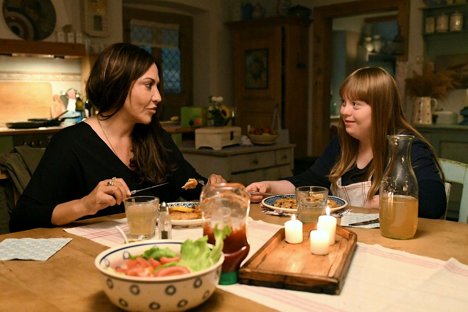 Liebe hinter geschlossenen VorhängenFrühling – Liebe hinter geschlossenen Vorhängen Eine köstliche Überraschung: Simone Thomalla als Katja, Luisa Wöllisch als MilaBild: © SRF/ZDF/Barbara Bauriedl