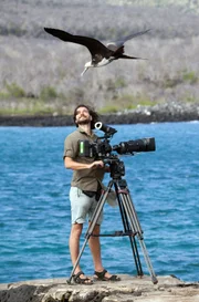 Im Bann der MeeresströmungenMitten im Pazifik der Galapagos-Archipel. Die Inseln gelten als Arche der Evolution. Nirgendwo sonst gibt es ein solch seltsames Sammelsurium an Tieren. Kameramann Michael Riegler wird von einem jungen Fregattvogel ins Visier genommen.Bild: © phoenix/NDR Naturfilm/Blue Planet Film/Thomas Behrend