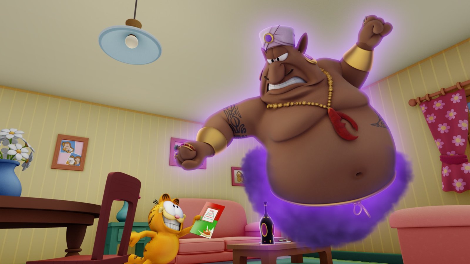 Garfield, das StinktierJon fährt zwei Tage auf eine Comic-Messe und Garfield schmeißt solange den Haushalt.Bild: © HR/Dargaud Media/MediaToon/Paws Inc./France 3