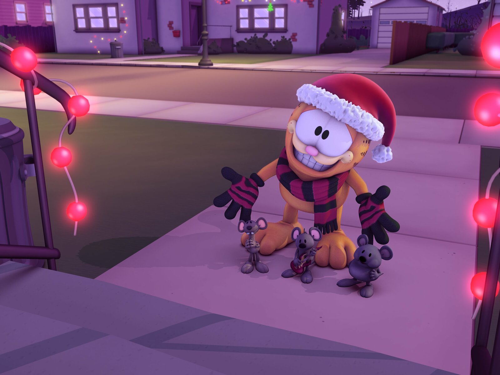 KatzenmusikGarfield macht sich auf, um sich mit Weihnachtsliedern ein paar Süßigkeiten zu verdienen.Bild: © HR/DARGAUD MEDIA