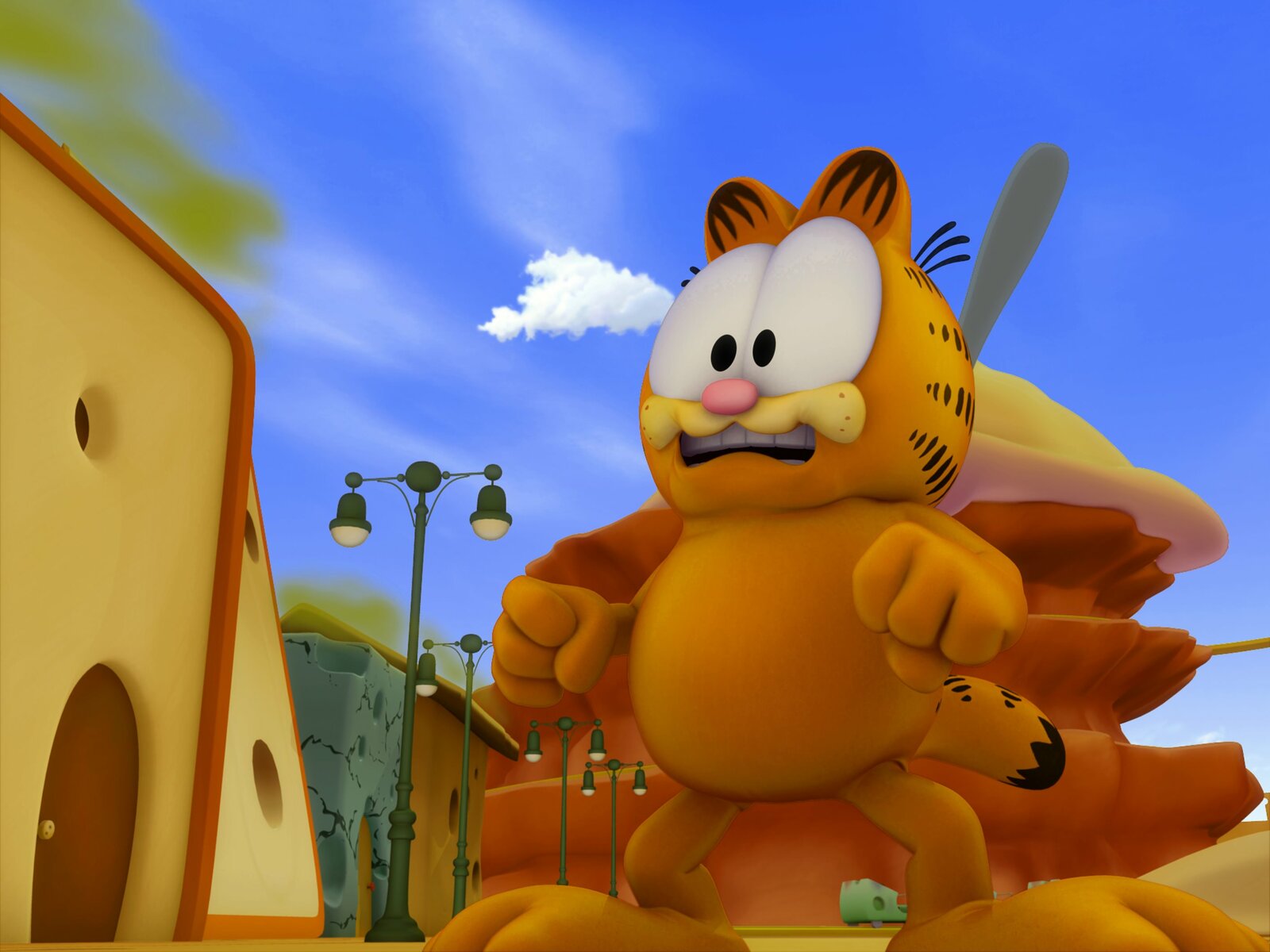 Der Lasagne-SpionGarfield ist entnervt, weil der niedliche Nermal einen ganzen Monat lang bei ihnen wohnen soll. Als wenn das nicht Strafe genug wäre, taucht plötzlich noch ein zweites niedliches Kätzchen namens Spumoni auf.Bild: © HR/DARGAUD MEDIA