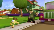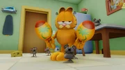 Fitness-WahnGarfield soll trainieren. Die Muskelprotz Maus Biff versucht, ihn in Form zu bringen. Doch Garfield wehrt sich mit allen Mitteln.Bild: © HR/DARGAUD MEDIA