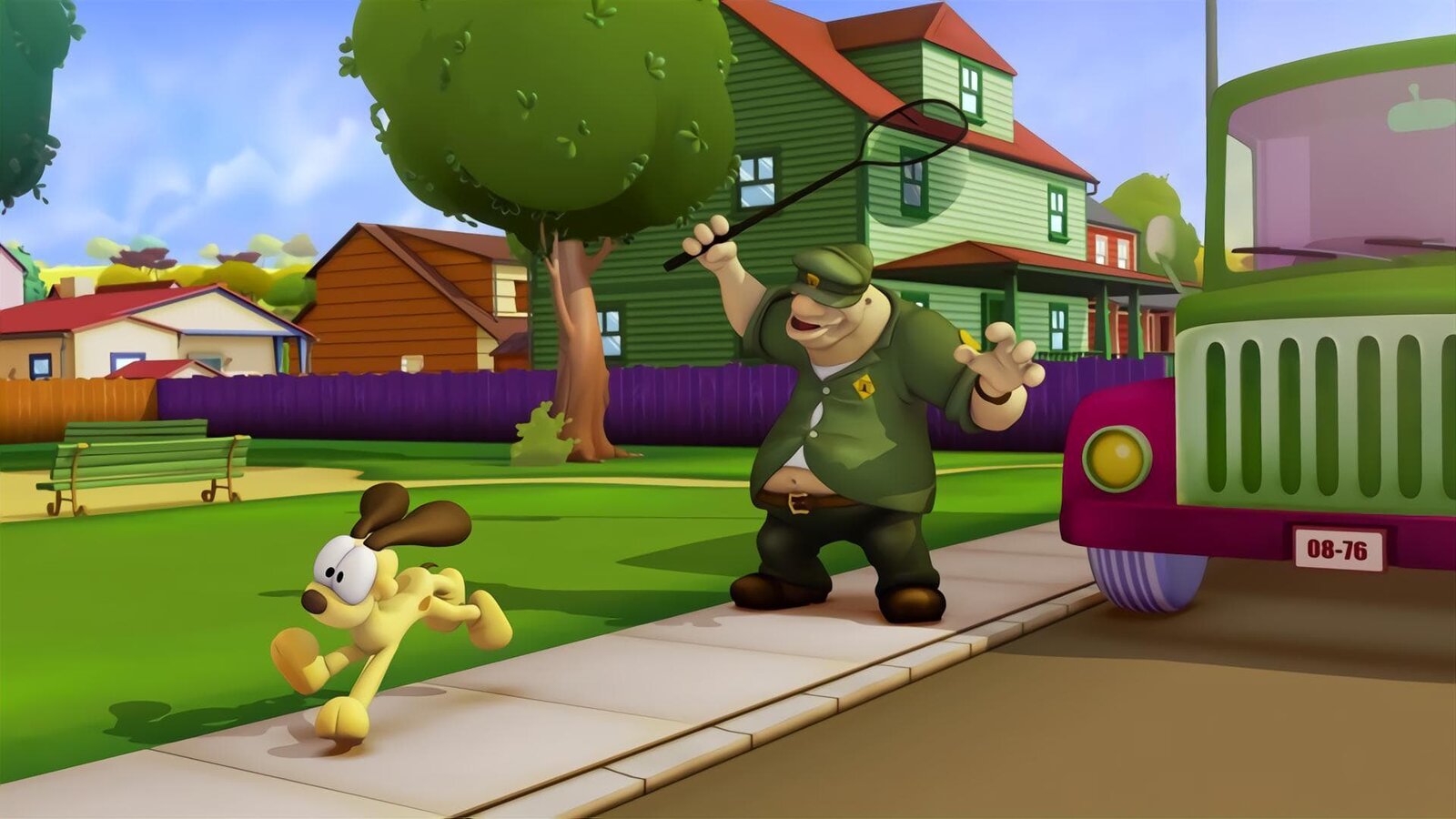Garfield und Odie auf der FluchtJon will seine Tiere baden, doch die flüchten. Zu dumm, dass Jon eine Prämie verspricht für denjenigen, der sie säubert.Bild: © HR/DARGAUD MEDIA