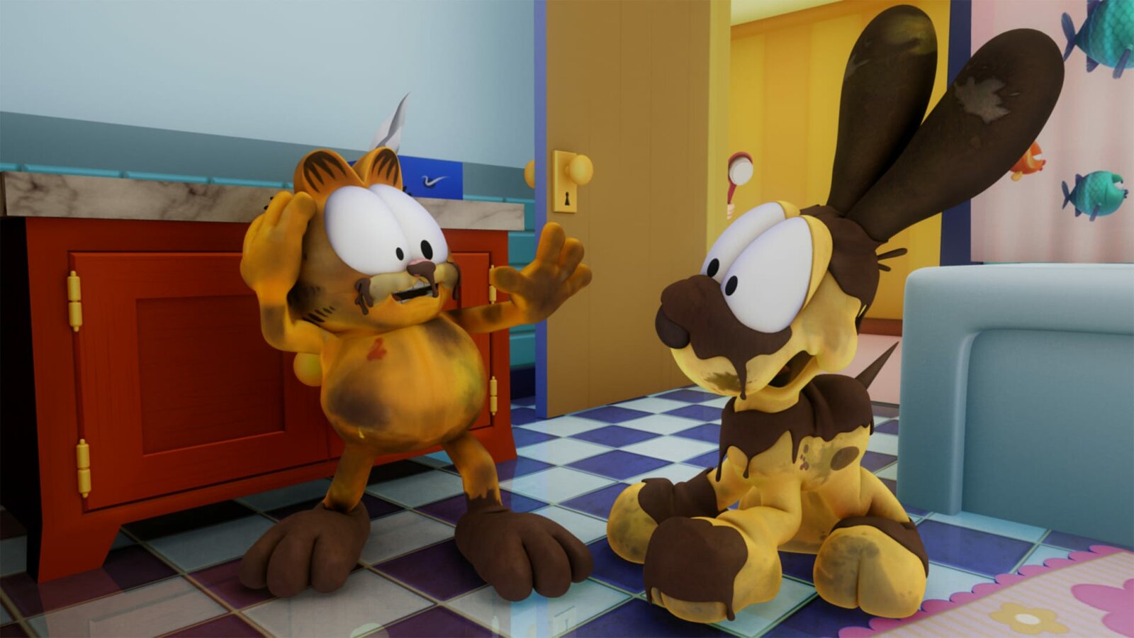 Wer ist Garfield?Durch einen Schlag auf den Kopf verliert Garfield sein Gedächtnis, was Nermal sofort ausnutzt.Bild: © HR/DARGAUD MEDIA