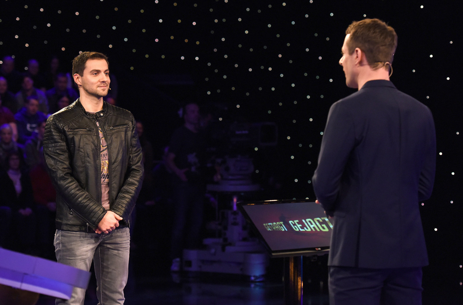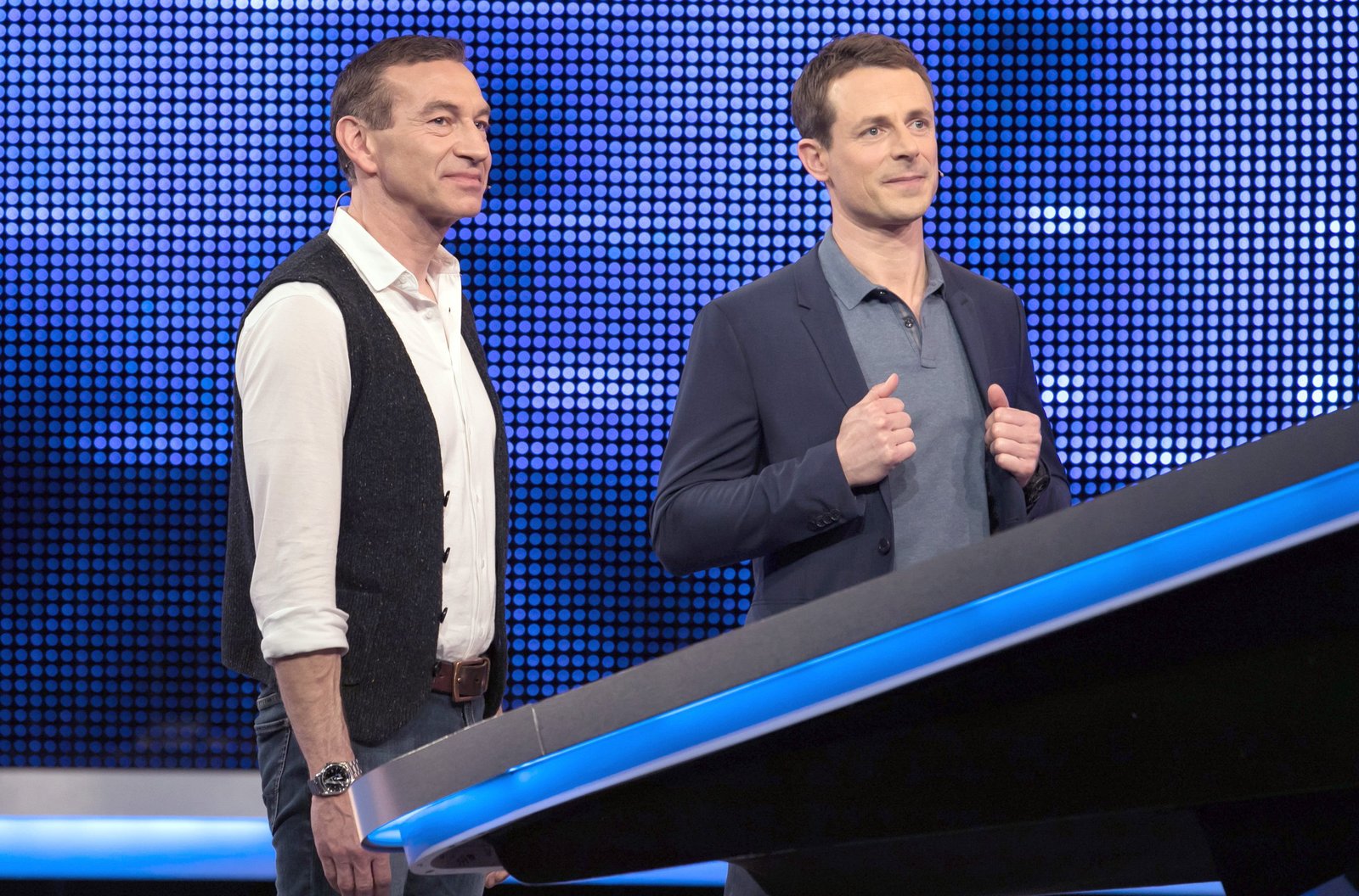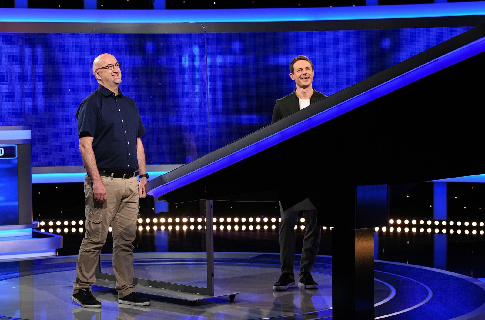 Folge 529Moderator Alexander Bommes (r.) mit dem Kandidaten Christian Gey (l.).Bild: © ARD/Uwe Ernst