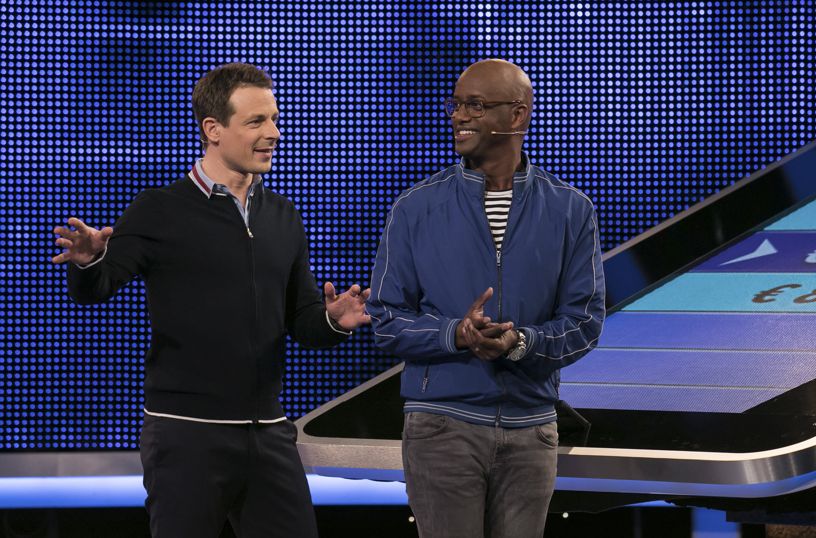 Moderator Alexander Bommes (r.) mit dem Kandidaten Philipp Herrmann (l.).Bild: © ARD/Uwe Ernst