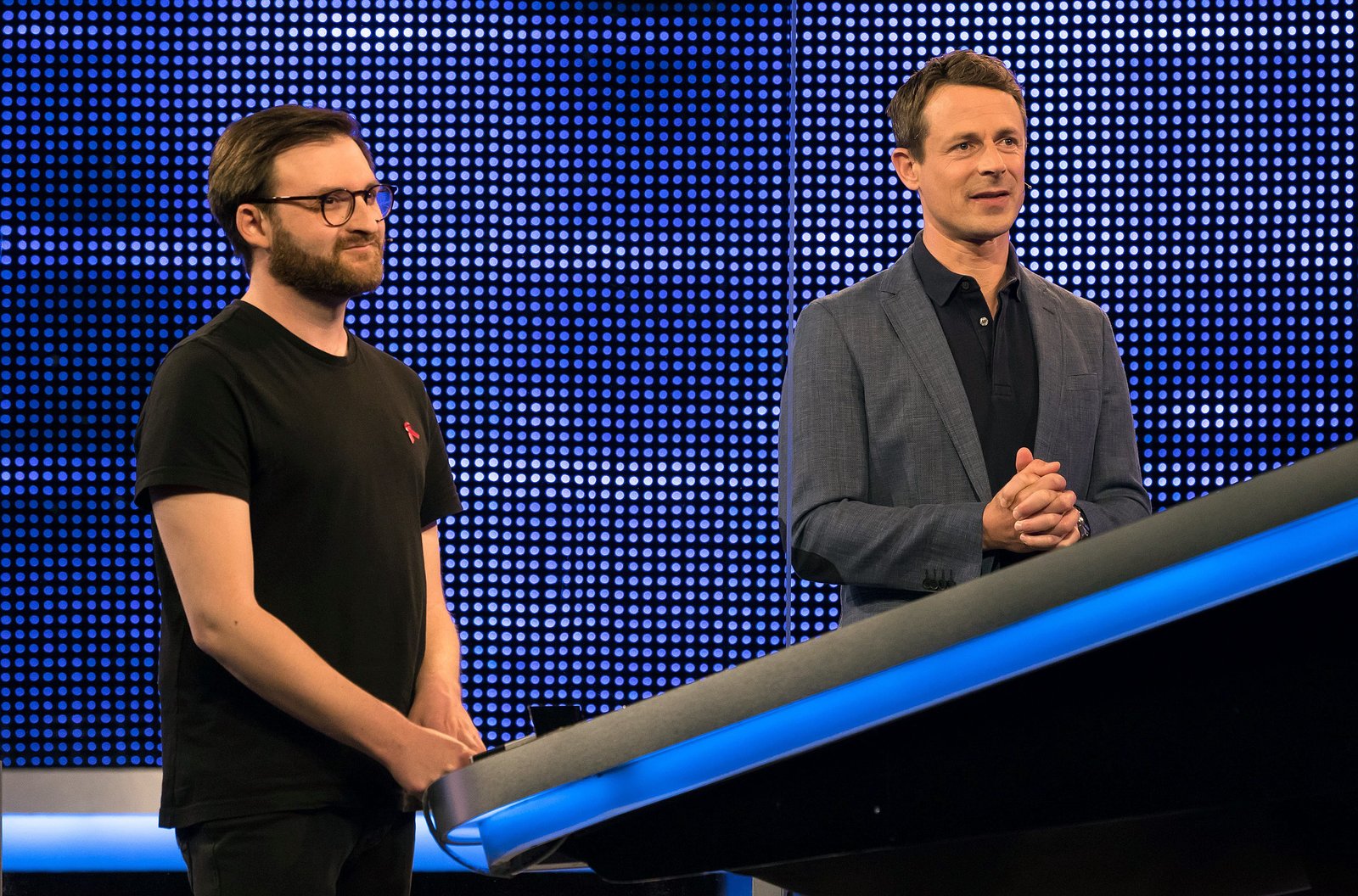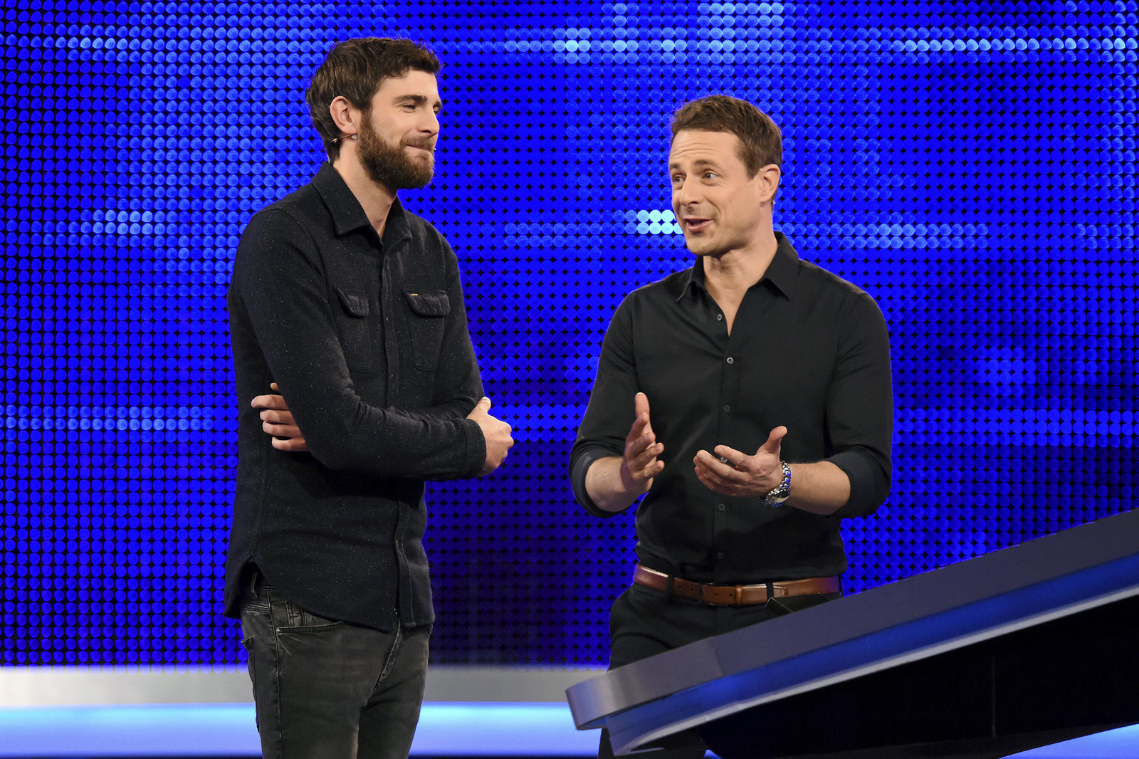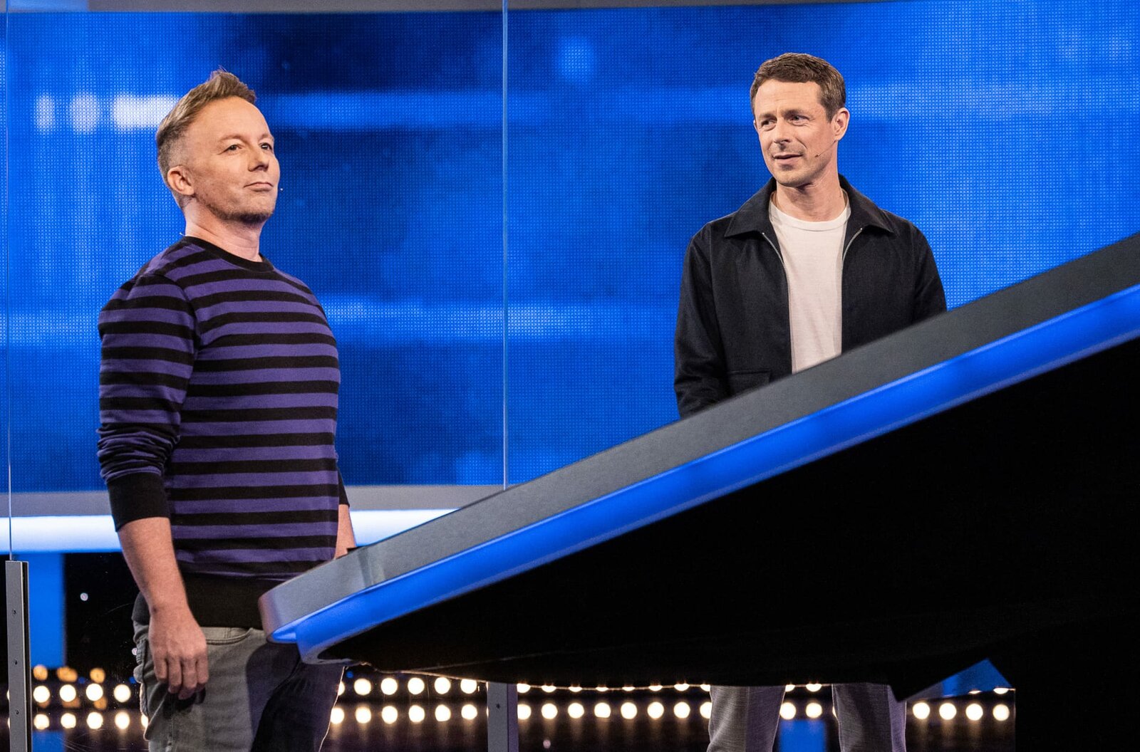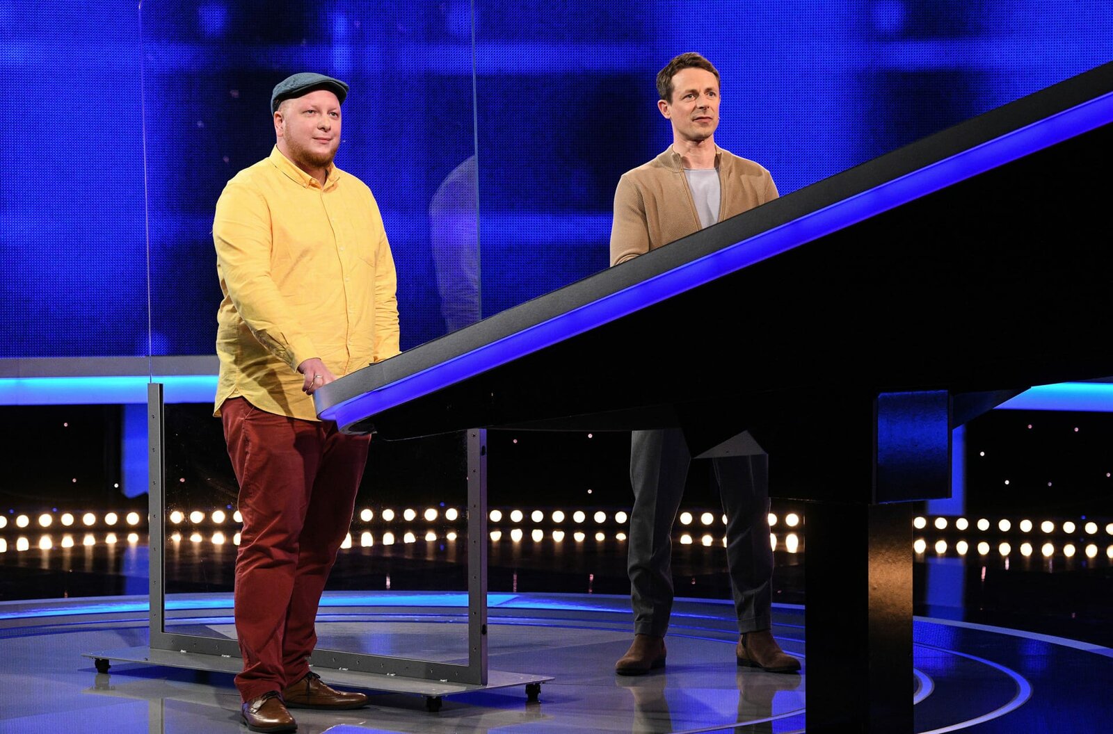 Moderator Alexander Bommes (l.) mit dem Kandidaten Fynn Marquardt (l.).Bild: © ARD/Uwe Ernst