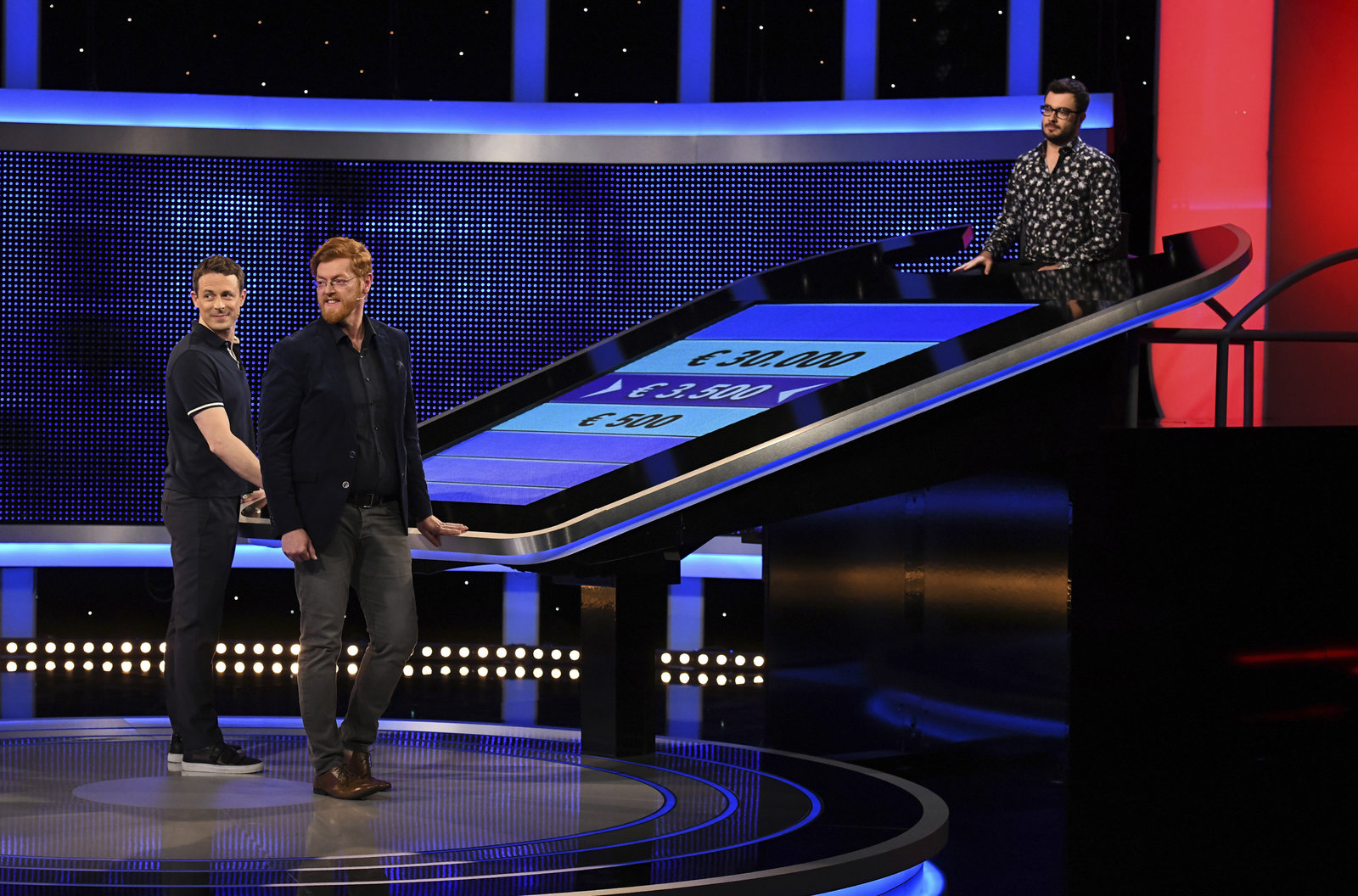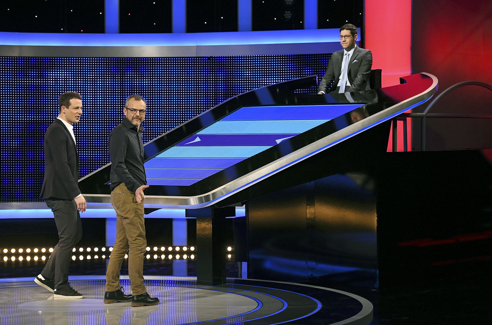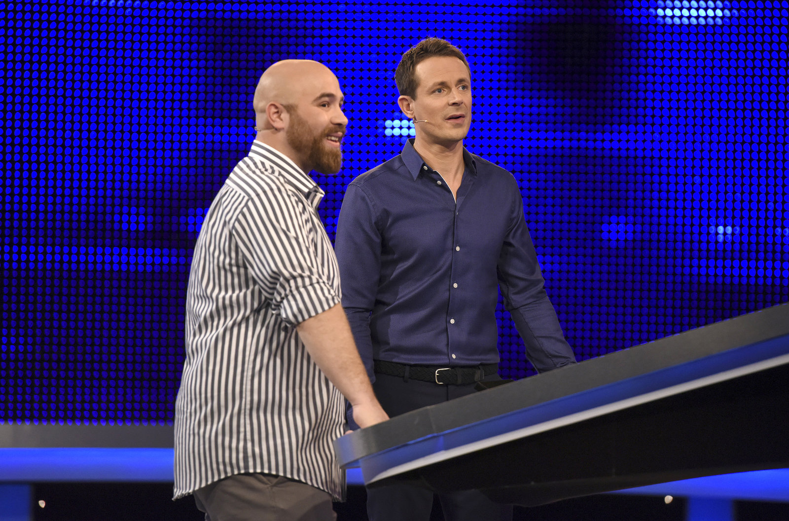Folge 451Moderator Alexander Bommes (r.) mit dem Kandidaten Patrick Orth Marquard (l.).Bild: © ARD/Uwe Ernst