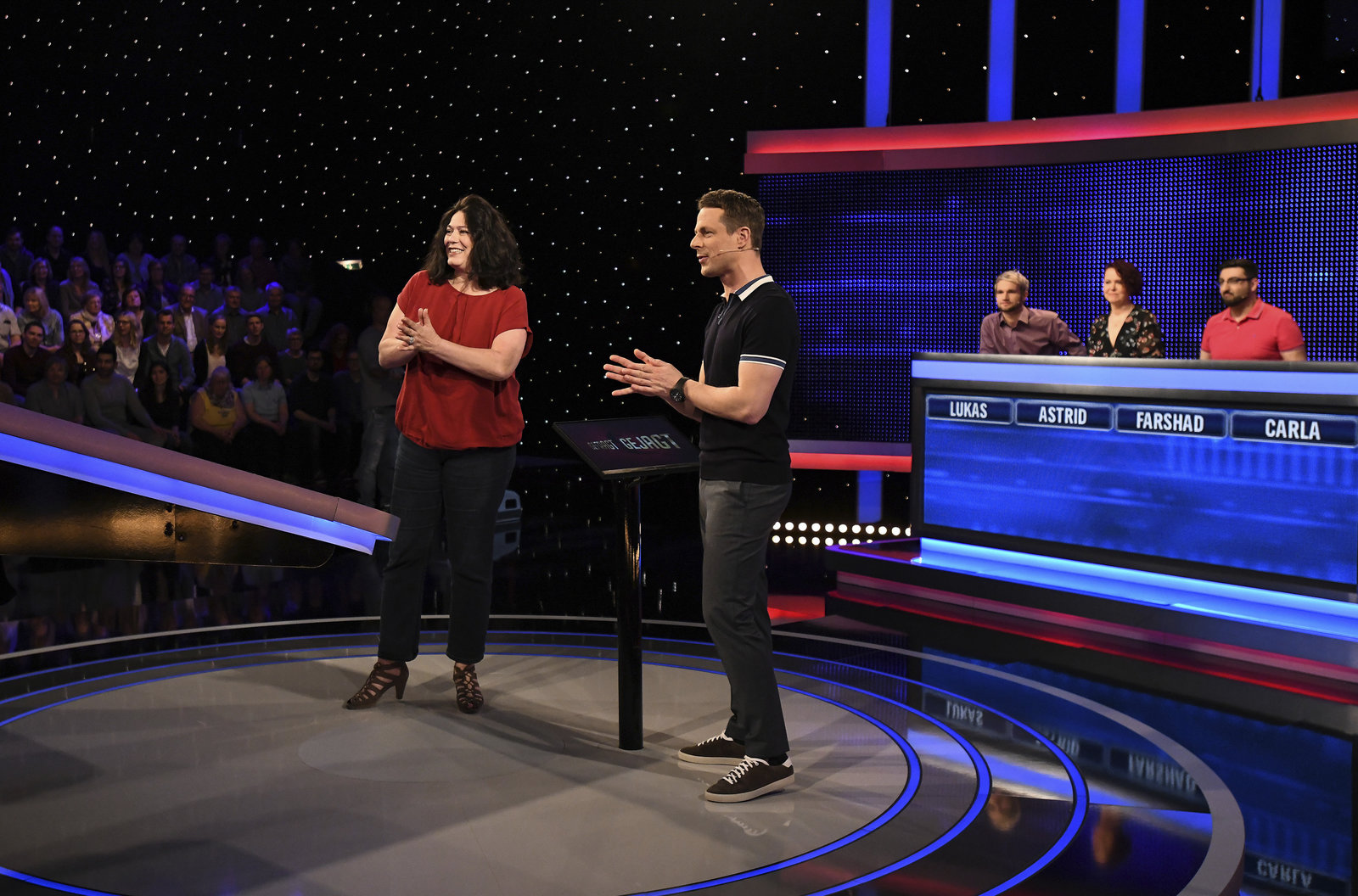 Folge 222Moderator Alexander Bommes (l.) mit der Kandidatin (v.l.n.r.): Gelareh Shahpar (l.).Bild: © ARD/Uwe Ernst