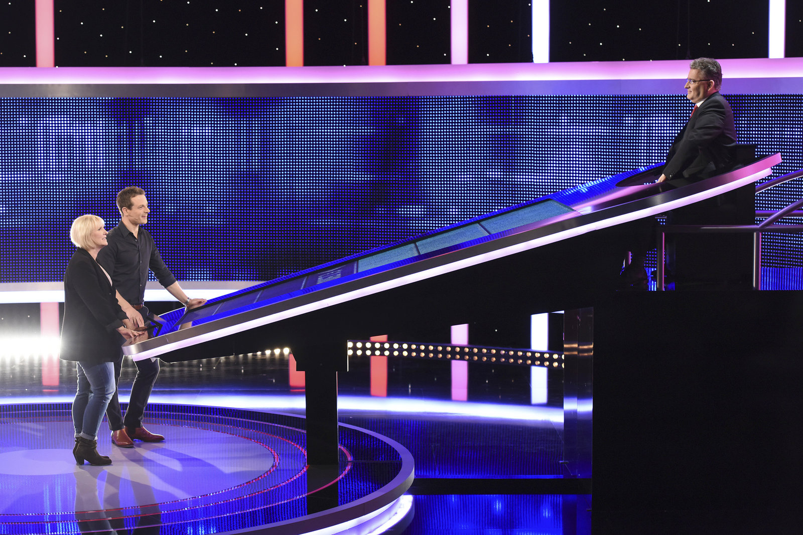 Folge 206Moderator Alexander Bommes (r.) mit der Kandidatin Daniela Faust (l.).Bild: © ARD/Uwe Ernst