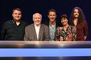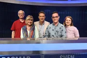 Der Quiz-Marathon (3)Moderator Alexander Bommes (2. v.l.) mit den Kandidaten (v.l.n.r.): Barbara Becker (Schauspielerin und Designerin), Pascal Hens (Ex-Handballer), Barbara Wussow (Schauspielerin), Jürgen Tarrach (Schauspieler)Bild: © NDR/Uwe Ernst