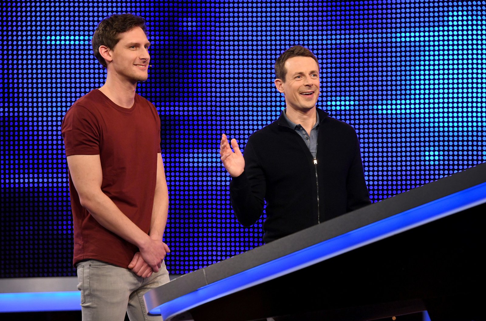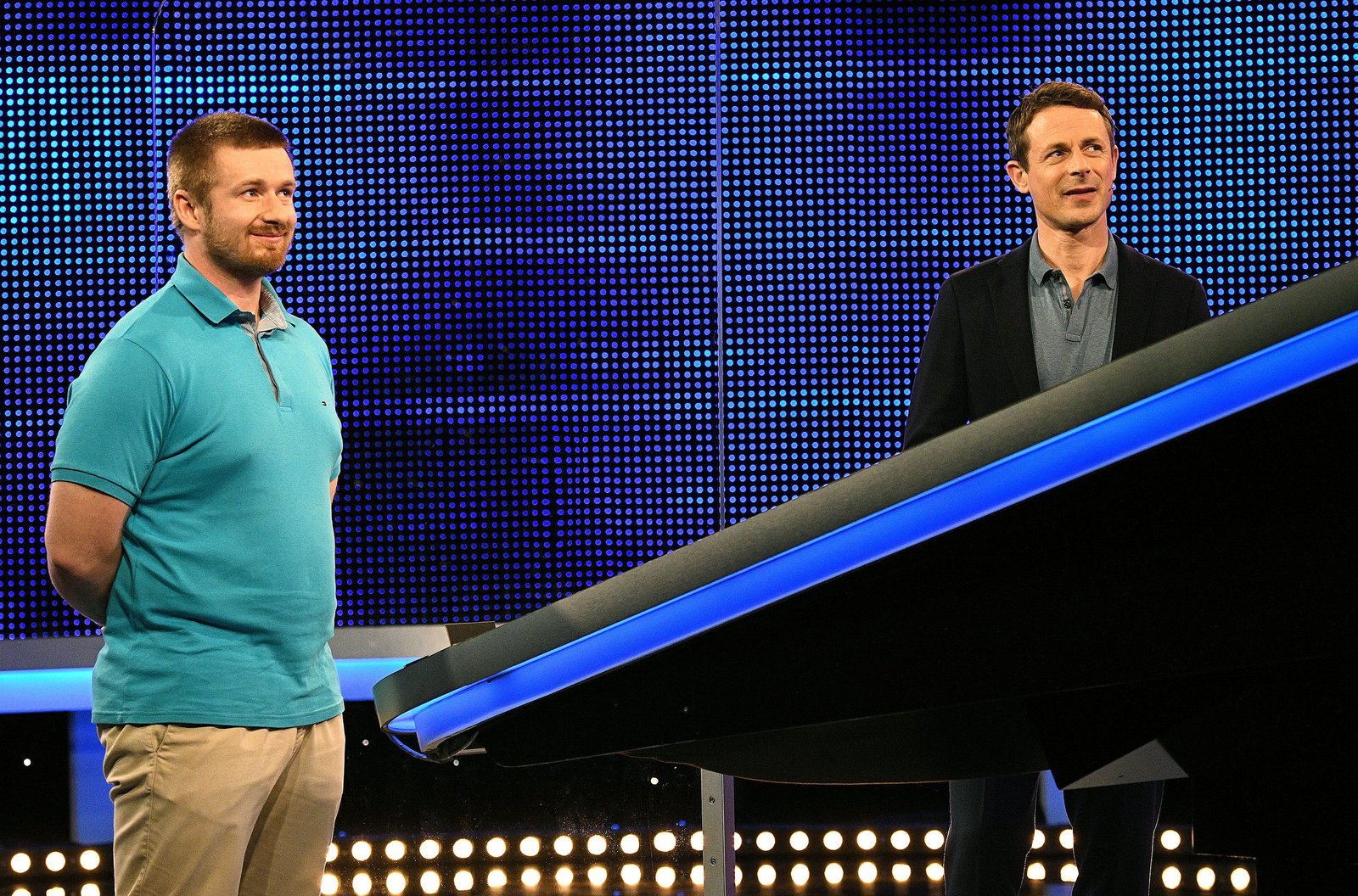 Moderator Alexander Bommes (r.) mit dem Kandidaten Patrik Huch (l.).Bild: © ARD/Uwe Ernst