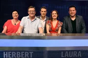 Folge 331Moderator Alexander Bommes (M.) mit den Kandidaten (v.l.n.r.): Ursula Schreiber, Herbert Franken, Laura Kasper und Danny Gerstle.Bild: © ARD/Uwe Ernst