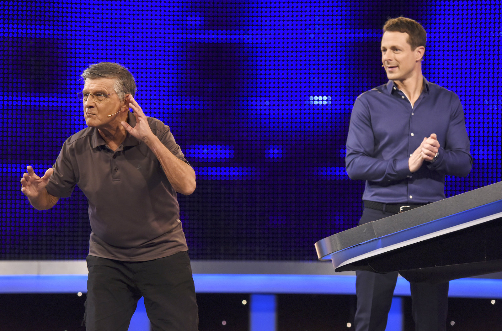 Folge 349Moderator Alexander Bommes (r.) mit dem Kandidaten Joachim Wolter (l.).Bild: © ARD/Uwe Ernst