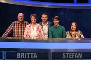 Der Quiz-Marathon (3)Moderator Alexander Bommes (2. v.l.) mit den Kandidaten (v.l.n.r.): Barbara Becker (Schauspielerin und Designerin), Pascal Hens (Ex-Handballer), Barbara Wussow (Schauspielerin), Jürgen Tarrach (Schauspieler)Bild: © SWR/NDR/Uwe Ernst