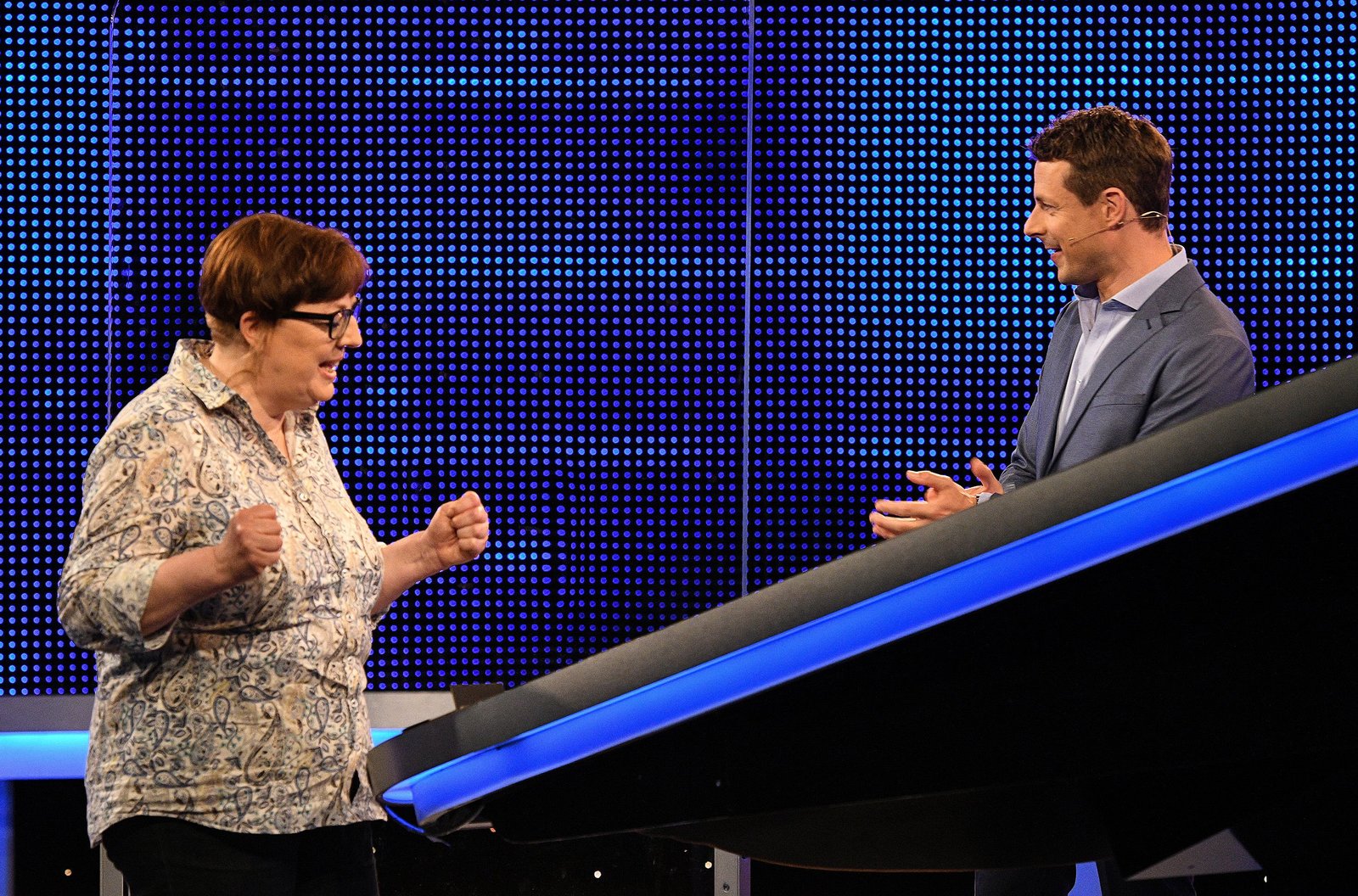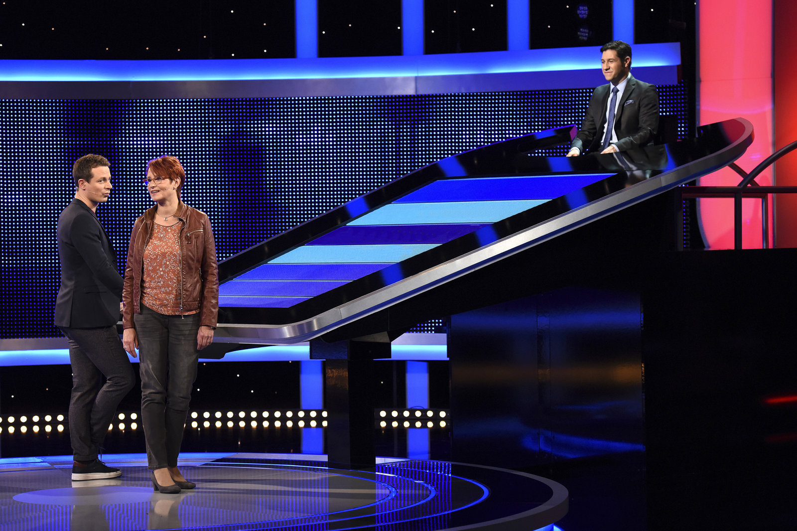 Folge 398Moderator Alexander Bommes (r.) mit der Kandidatin Michaela Hoppe (l.).Bild: © ARD/Uwe Ernst