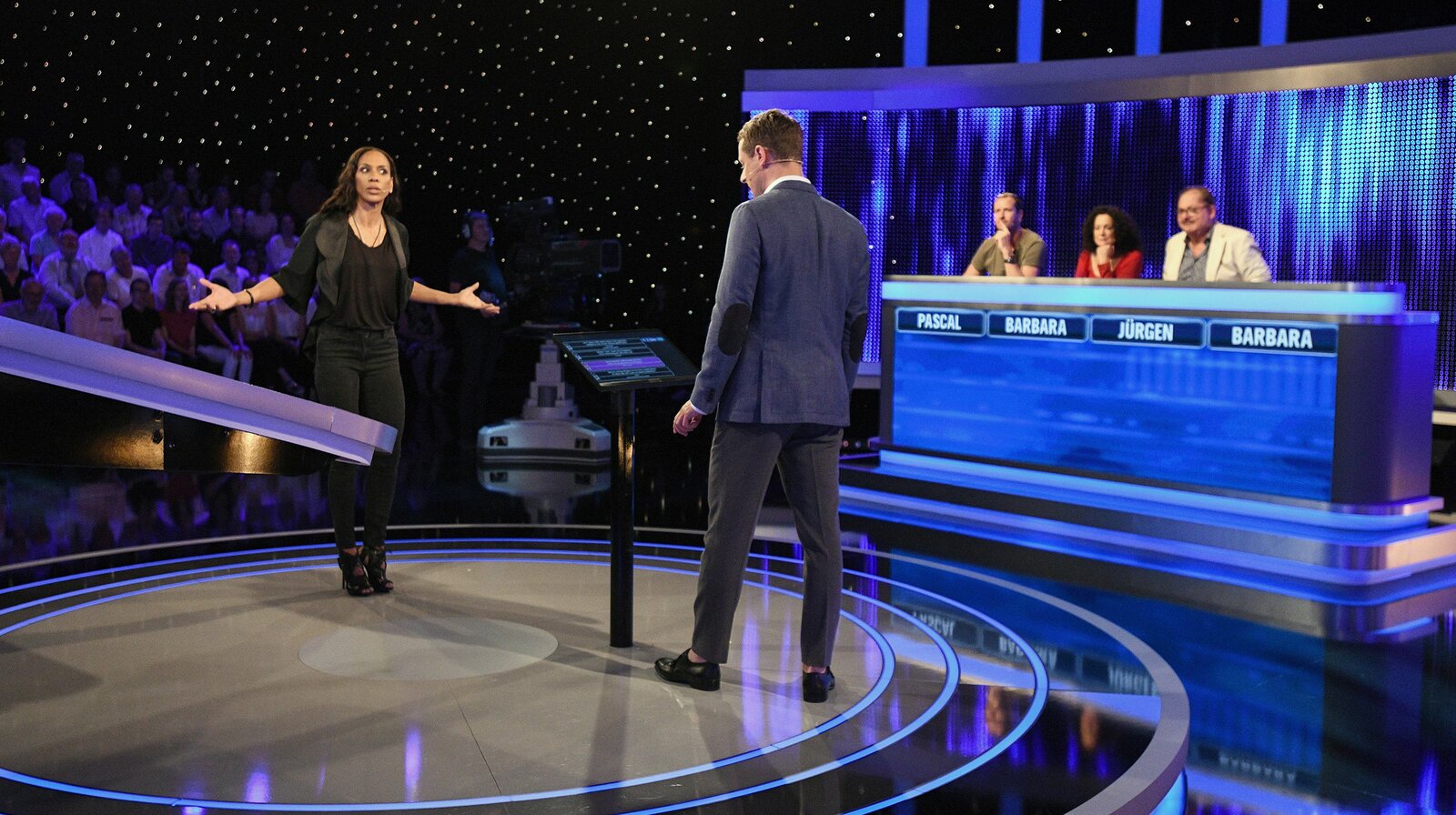 Moderator Alexander Bommes (r.) mit der Kandidatin Andrea Förster (l.).Bild: © ARD/Uwe Ernst