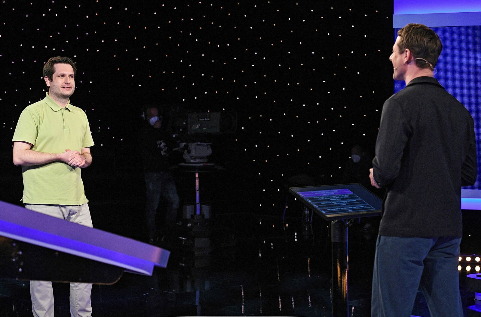 Folge 517Moderator Alexander Bommes (r.) mit dem Kandidaten Dr. Malte Dürr (l.).Bild: © ARD/Uwe Ernst