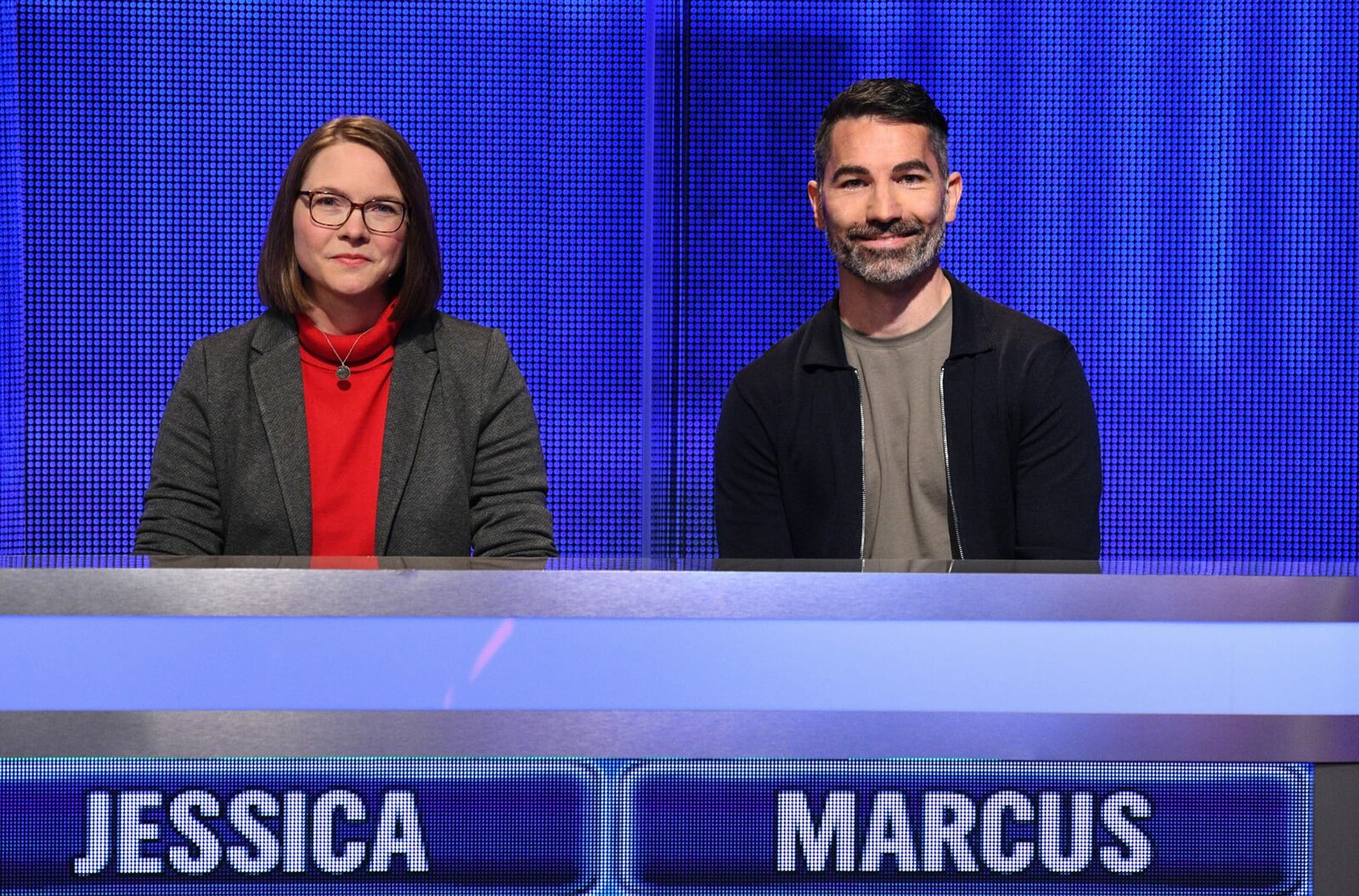 Folge 566Jagdruf zur Radiowoche. Nach dem sensationellen Erfolg im letzten Jahr heißt es bei „Gefragt – Gejagt“ wieder: „Die Jagd beginnt“ für beliebte Moderatorinnen und Moderatoren und ihren Hörerinnen und Hörern. In fünf Ausgaben des Vorabendquiz‘ im Ersten treten die Moderatoren von ARD-Radiowellen gegen das Team der Quizelite an. An ihrer Seite stehen vom 27. September bis 1. Oktober 2021 je eine Hörerin bzw. ein Hörer aus dem jeweiligen Sendegebiet, die zuvor durch Höreraktionen ermittelt worden sind. Im Bild: Die Hörerin Jessica Weppler (l.) mit Radiomoderator Marcus Fahn von Bayern 1 (r.)Bild: © ARD/Uwe Ernst