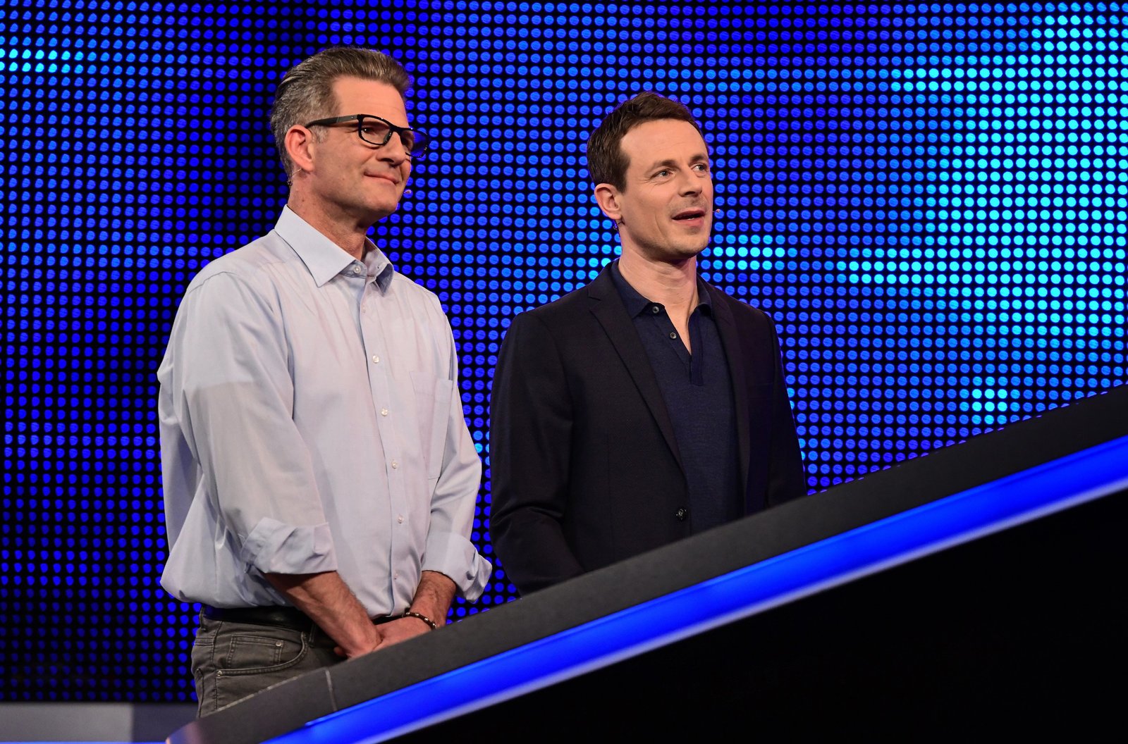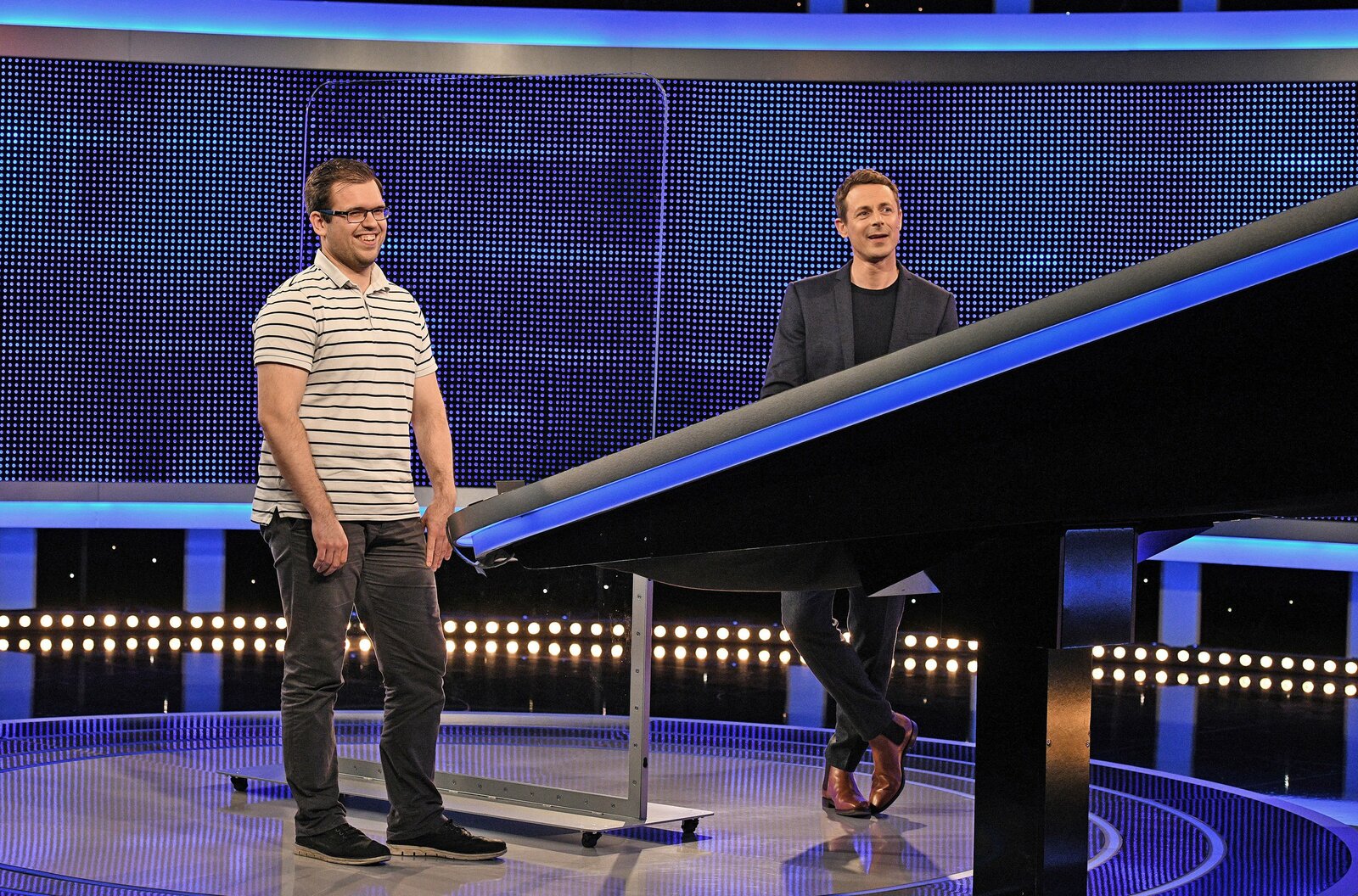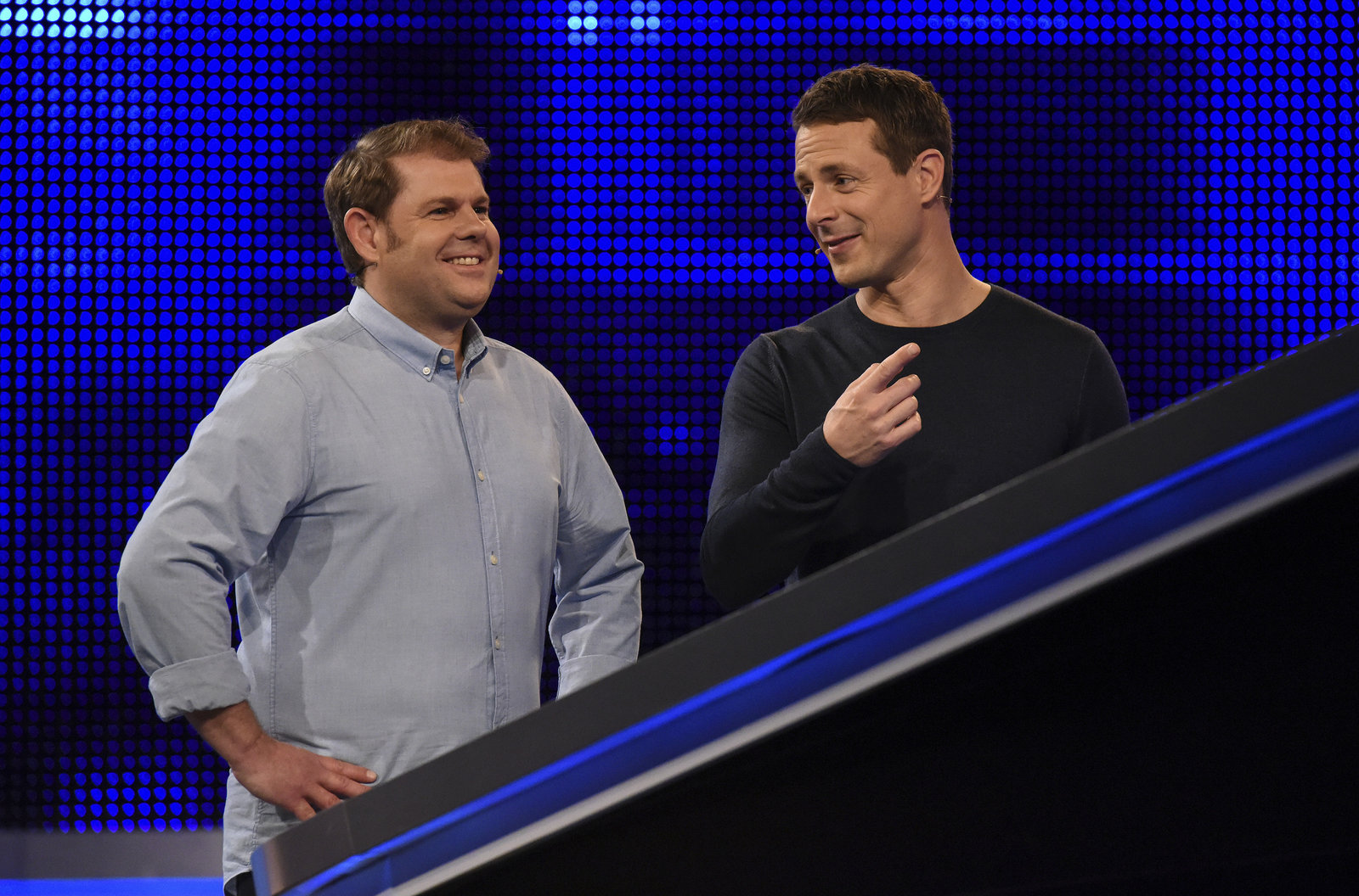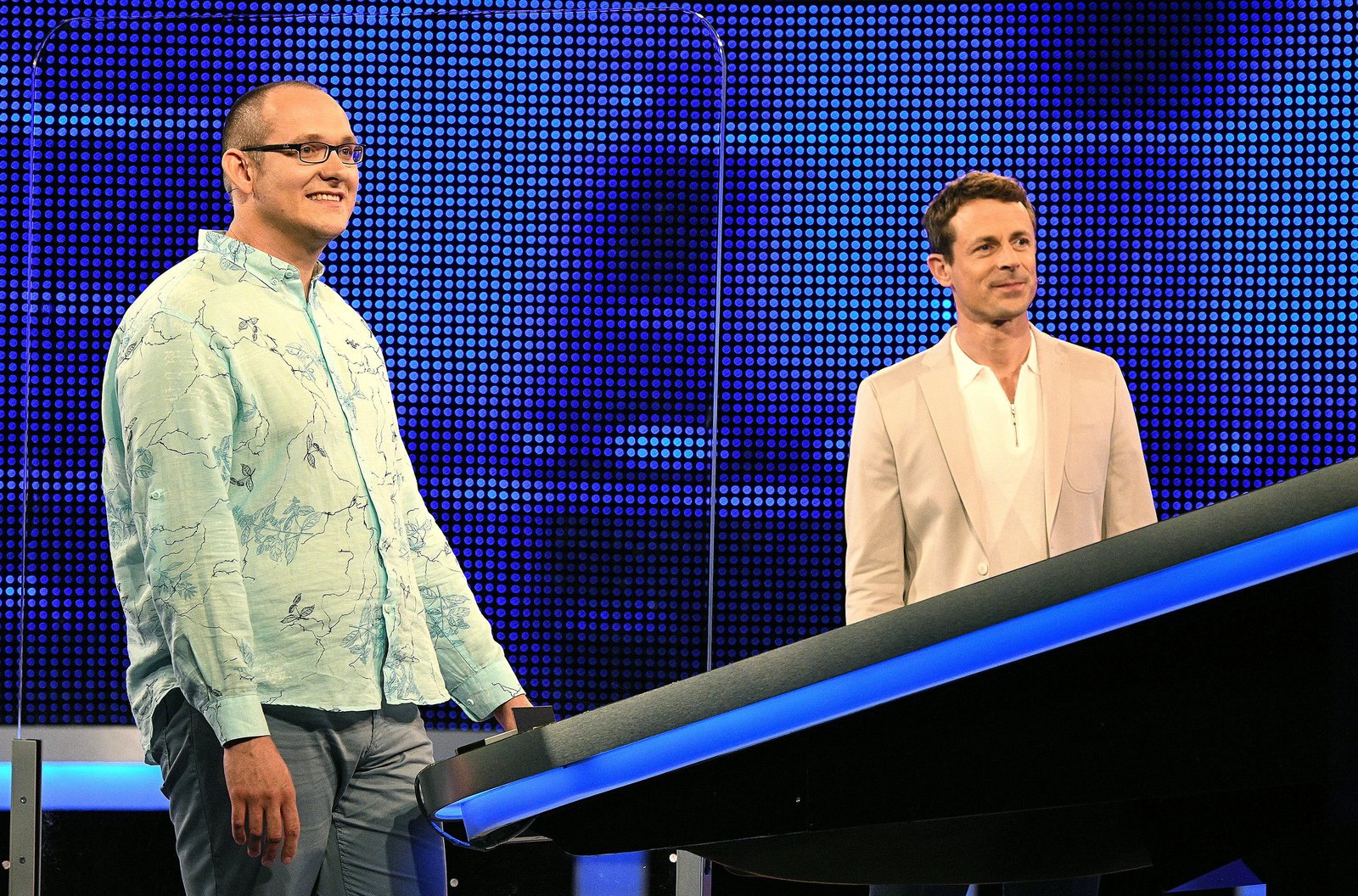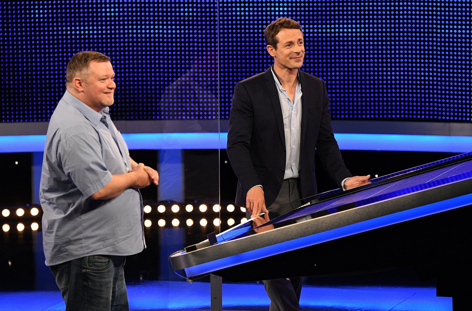 Moderator Alexander Bommes (r.) mit dem Kandidaten Oliver Döscher (l.).Bild: © ARD/Uwe Ernst