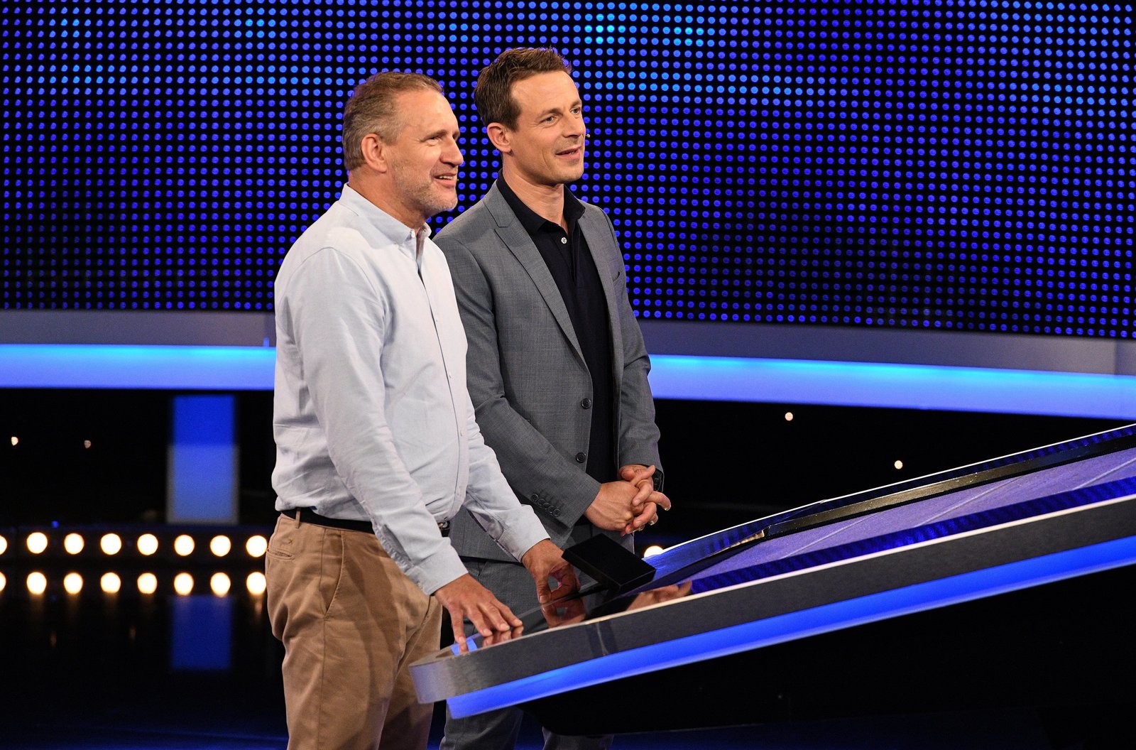 Folge 391Moderator Alexander Bommes (r.) mit dem Kandidaten Dirk Grotkaß (l.).Bild: © ARD/Uwe Ernst