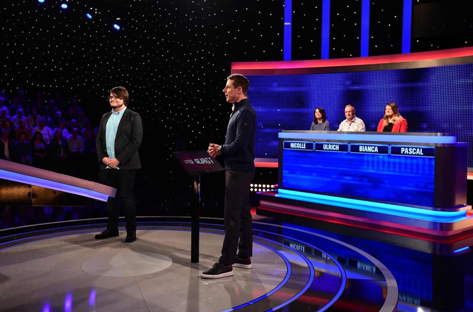 Folge 481Moderator Alexander Bommes (r.) mit dem Kandidaten Daniel Arzner (l.).Bild: © ARD/Uwe Ernst