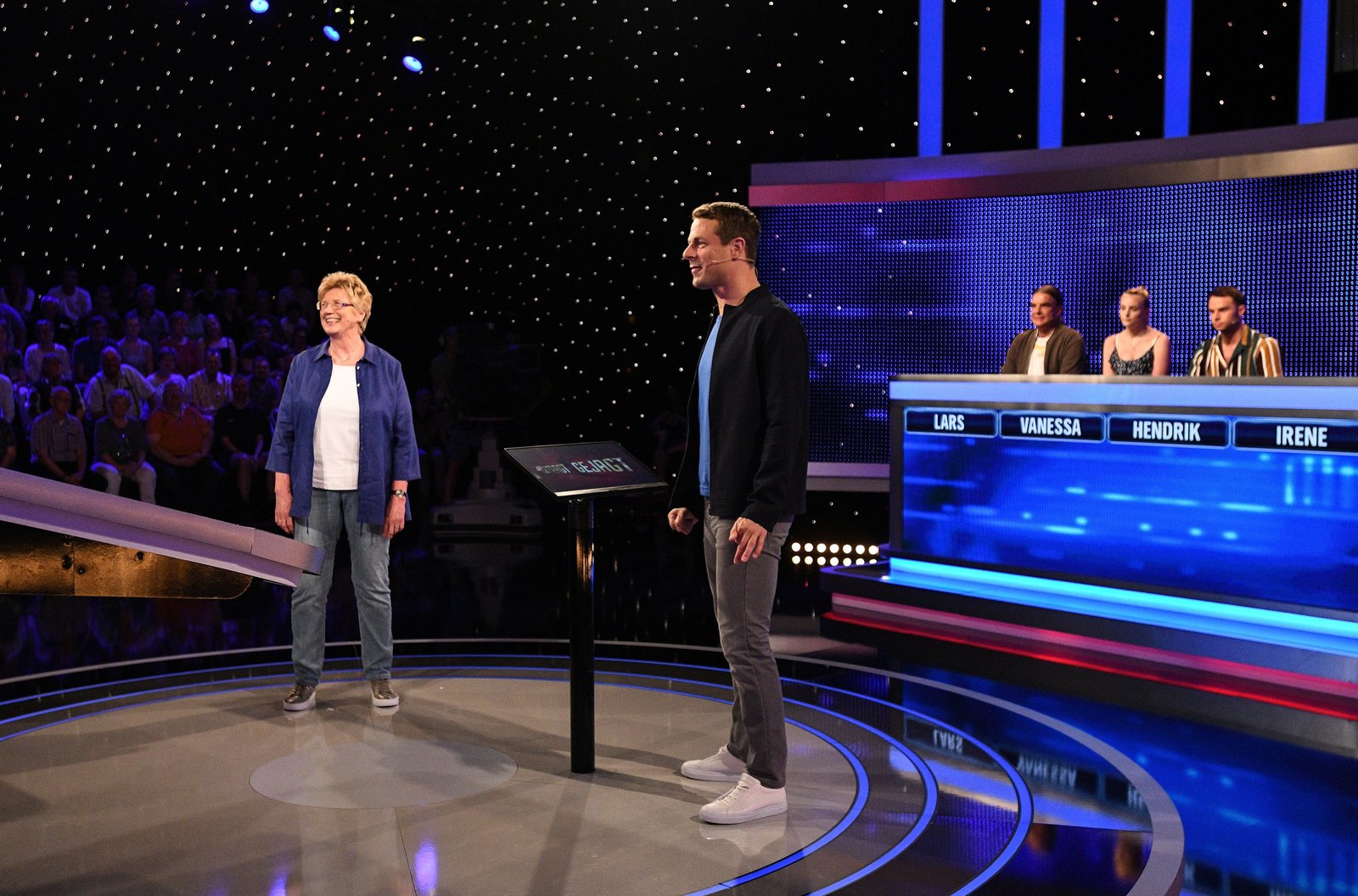 Moderator Alexander Bommes (r.) mit der Kandidatin Cornelia "Connie" Schubert (l.).Bild: © ARD/Uwe Ernst