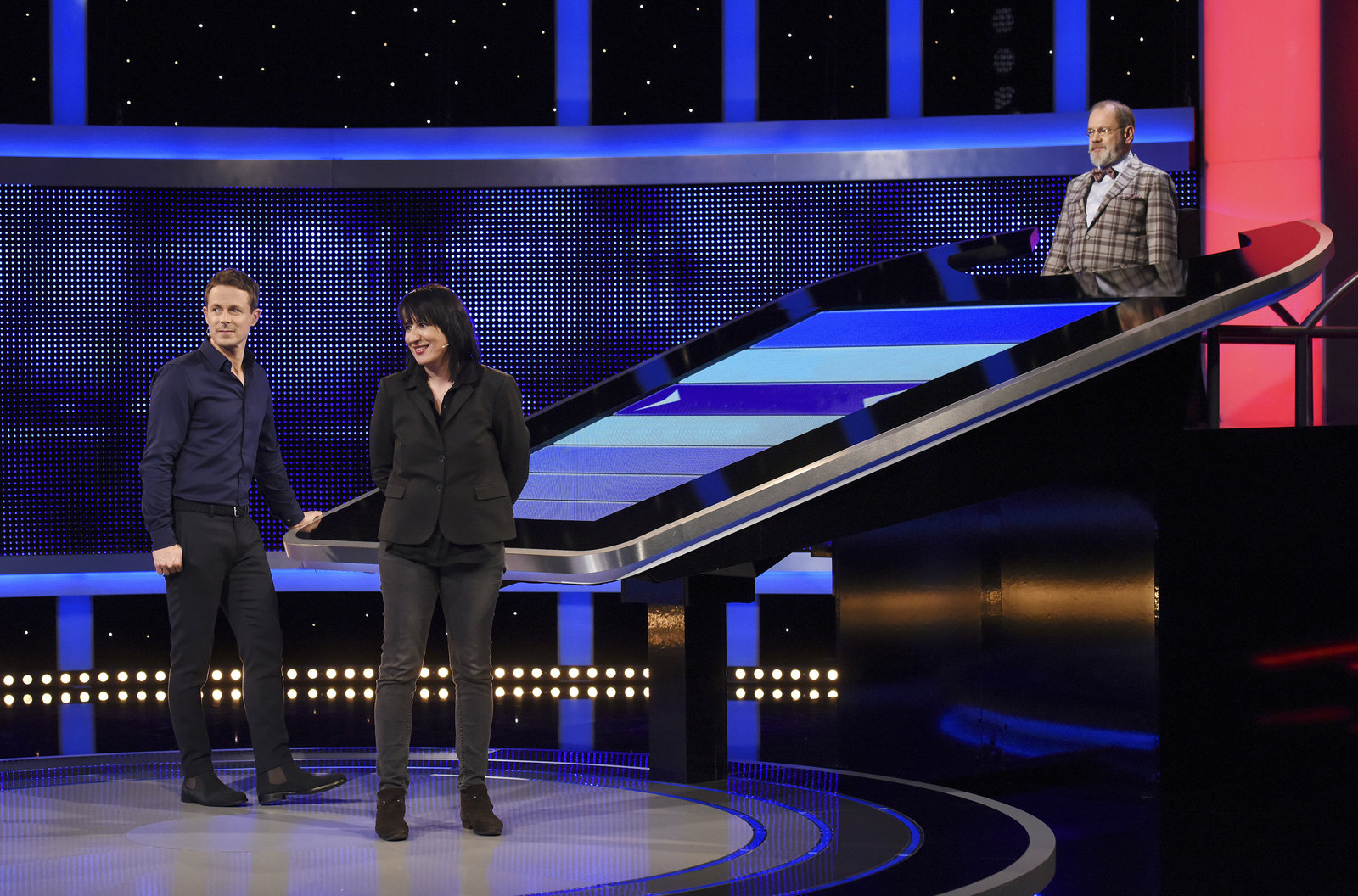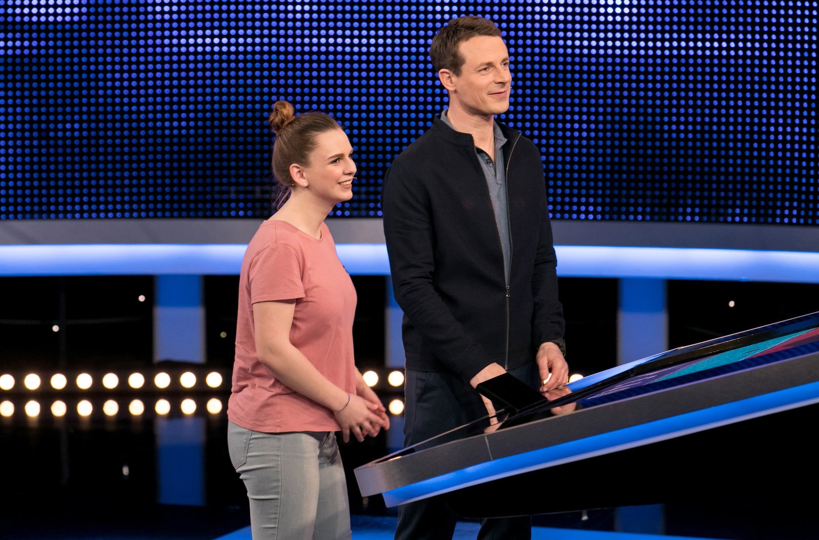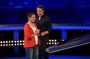 Moderator Alexander Bommes (r.) mit der Kandidatin Florentine Friedrich (l.).Bild: © ARD/Lisa Krechting