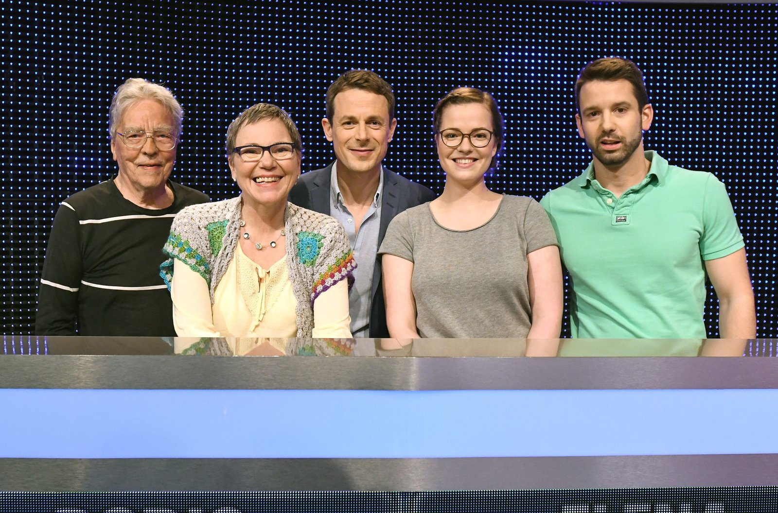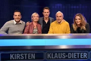 Folge 235Moderator Alexander Bommes (M.) mit den Kandidaten (v.l.n.r.): Elke Sauer, Richard Wernecke, Robert Atzler und Lieselotte Klein.Bild: © ARD/Uwe Ernst