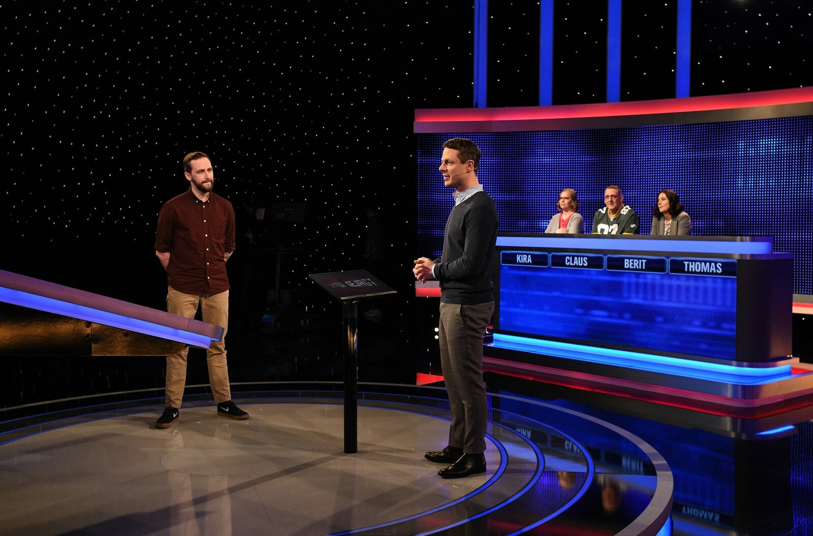 Folge 311Moderator Alexander Bommes (r.) mit dem Kandidaten Thomas Beier (l.).Bild: © ARD/Uwe Ernst