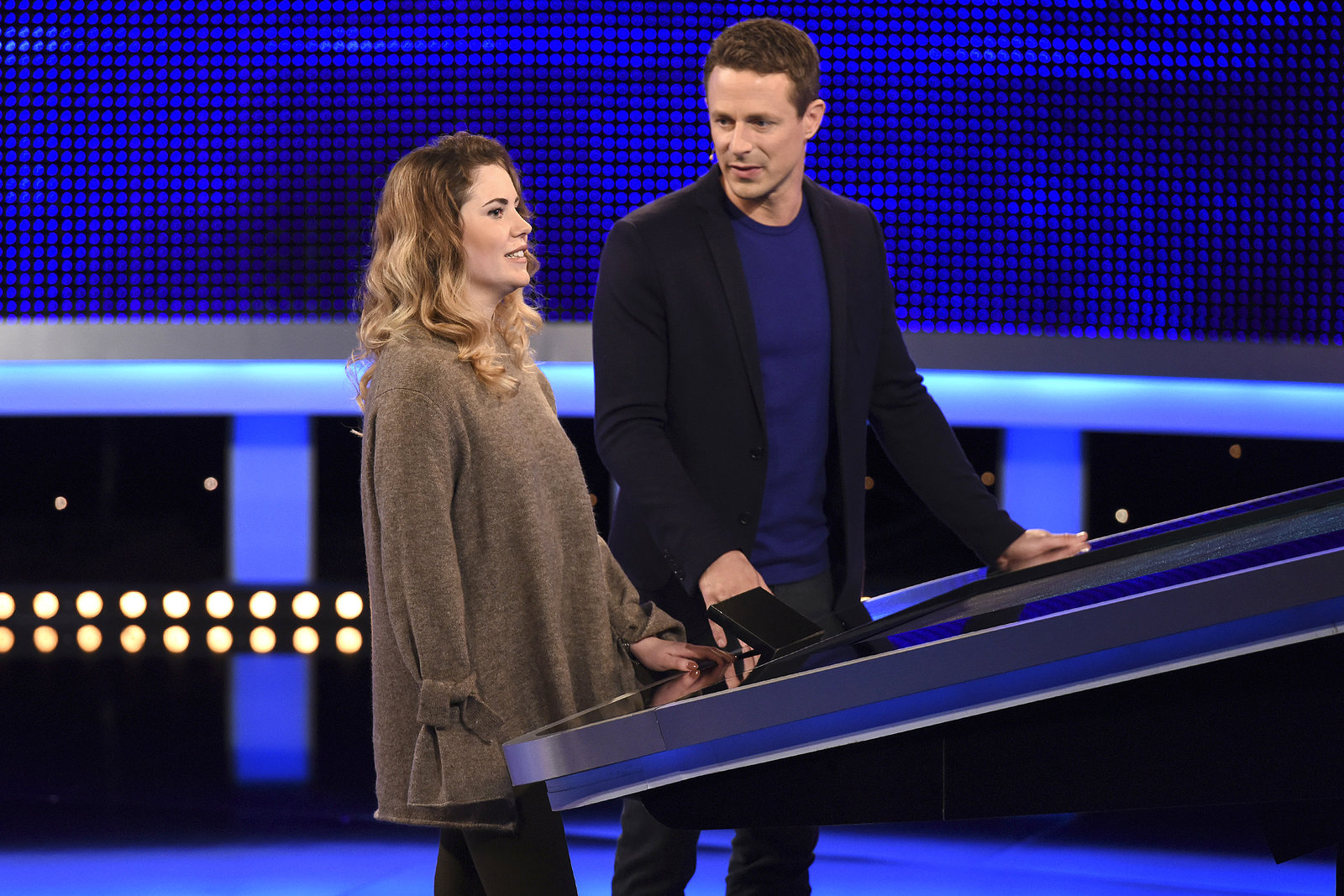 Moderator Alexander Bommes (r.) mit der Kandidatin Marie Freitag (l.).Bild: © ARD/Uwe Ernst