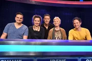 Moderator Alexander Bommes (M.) mit der Kandidatin Sigrid Bonelo (l.) und den Kandidaten Sabine Schomberg (3.v.r.), Martin Muehlenberg (2.v.r.) und Ruth Lorenz (r.).Bild: © ARD/Uwe Ernst