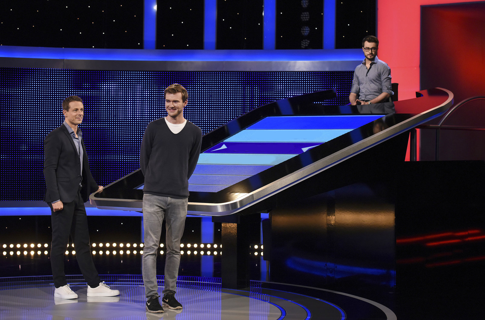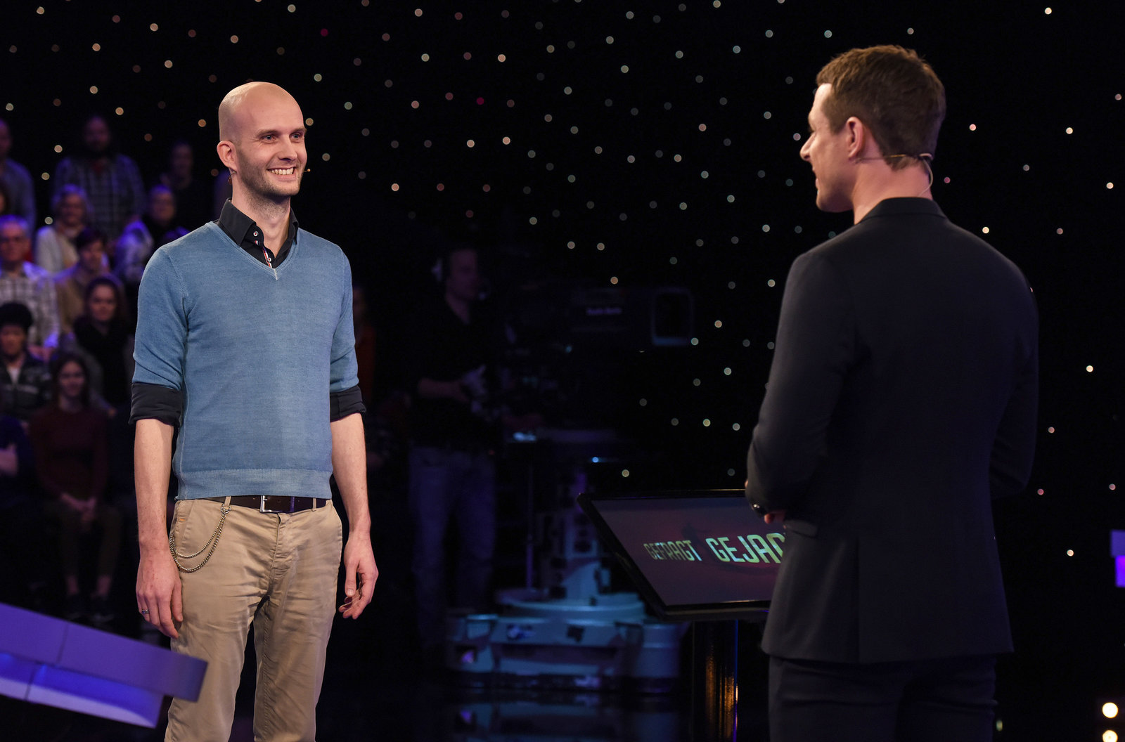Folge 395Moderator Alexander Bommes (M.) mit dem Kandidaten Gerrit Dolle (l.).Bild: © ARD/Uwe Ernst